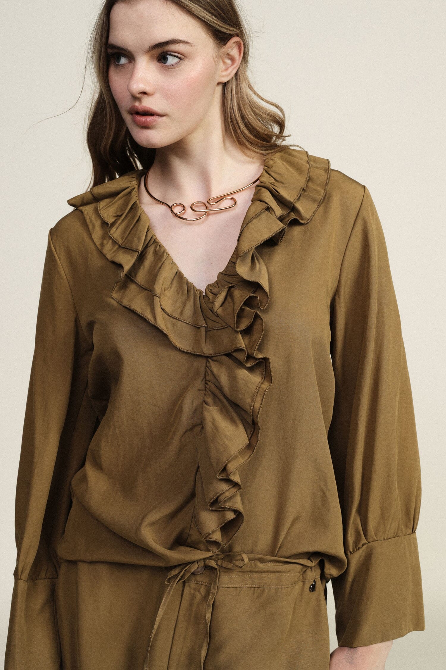 Blouse With Ruffle Neckline And Long Sleeves Dixie