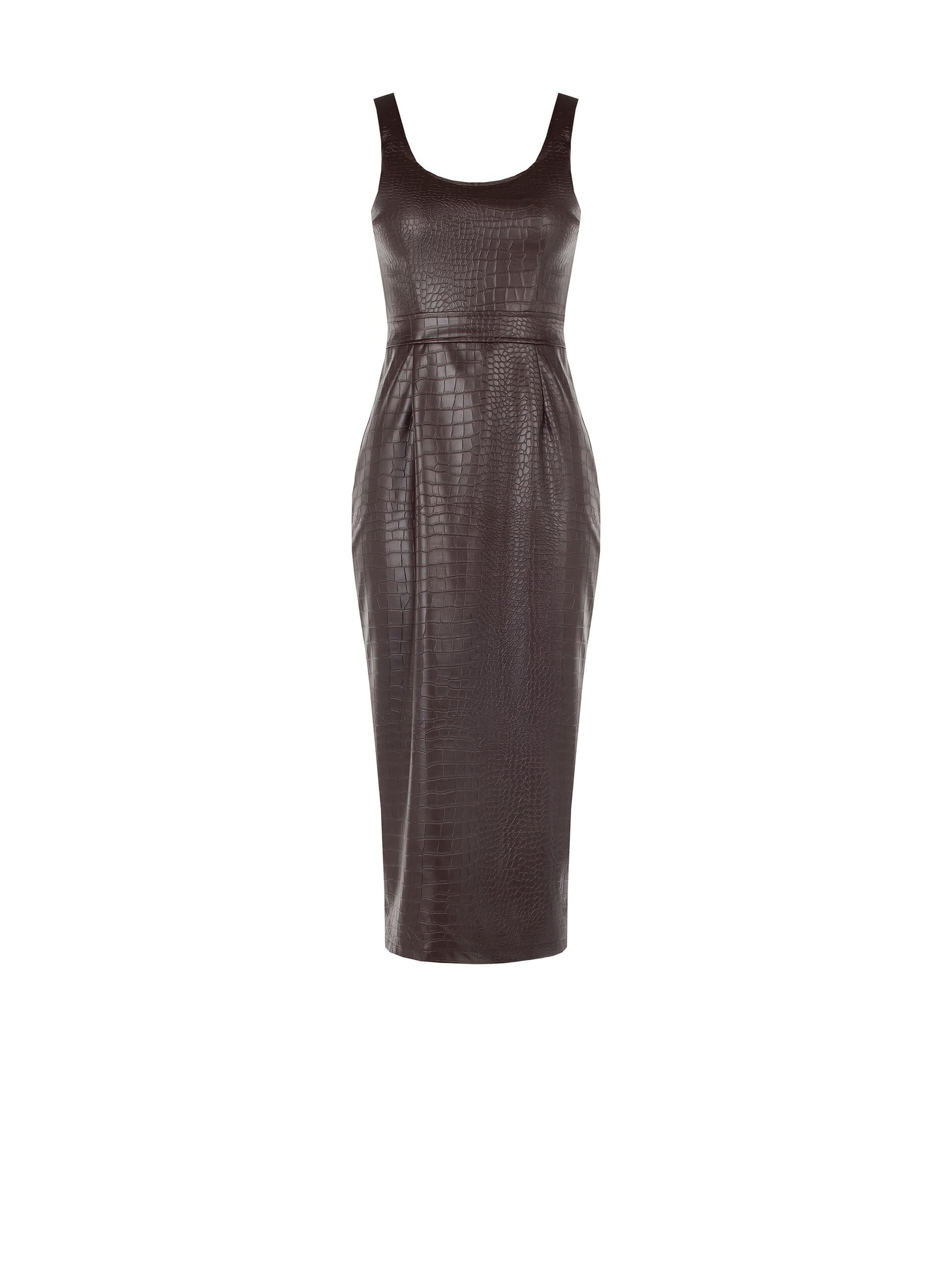 Reduced price! Coconut Leatherette Midi Sheath Dress With Split Back Rinascimento Expand
