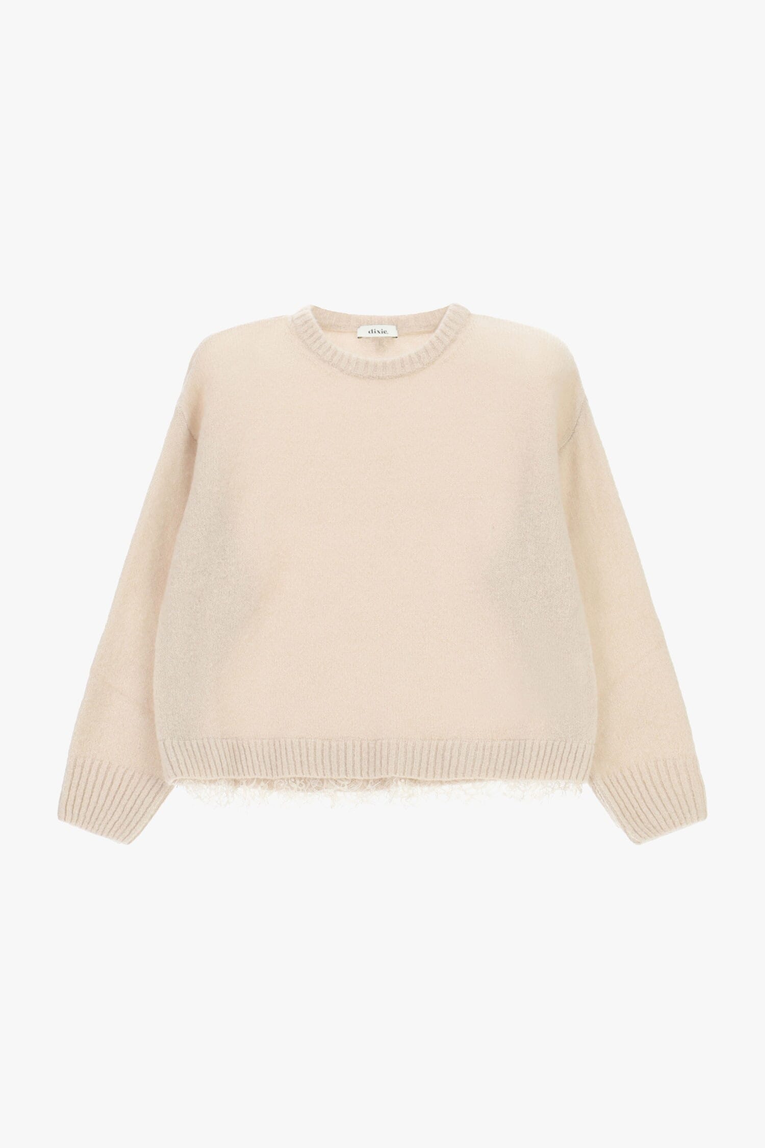 Impress with a softly cut, classic crew-neck jumper, embellished with a delicate lace hem that peeks out just below the edge. Perfect for adding an original touch to your everyday looks, it goes easily with both jeans and skirts thanks to its versatile silhouette and attention to detail.