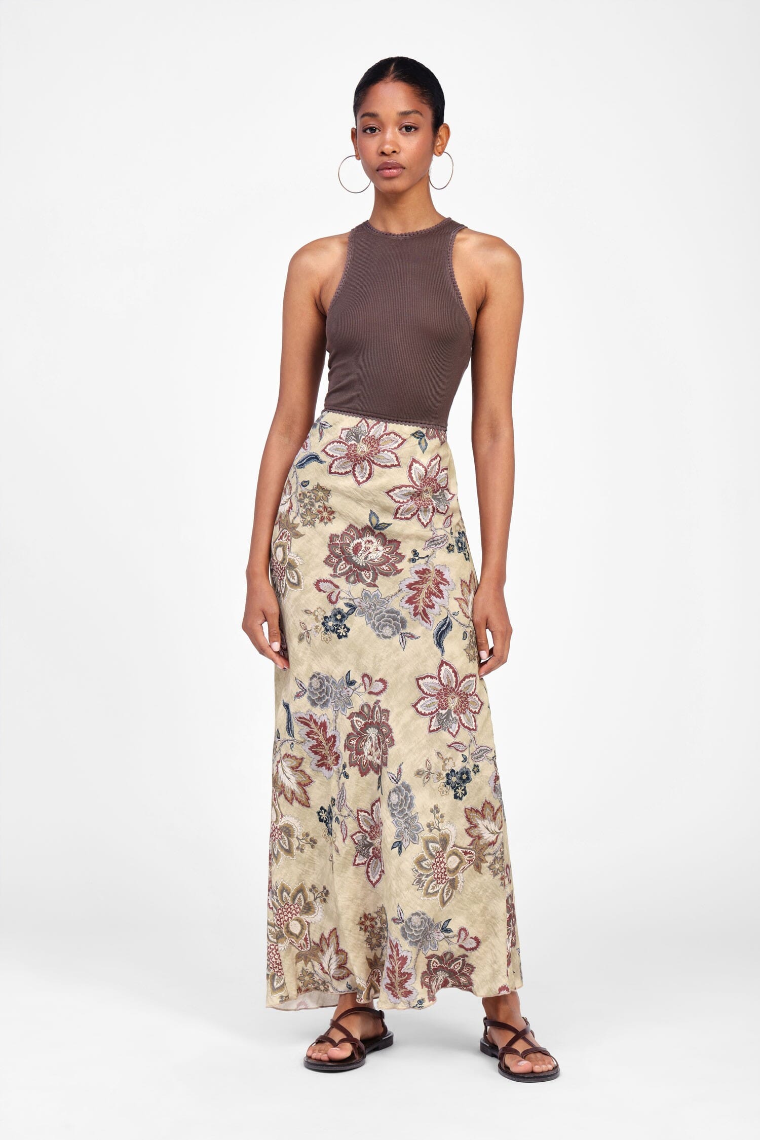 A skirt that captures the spirit of nature with its charming floral pattern. The soft, flowing silhouette allows for a comfortable fit, perfect for wearing on any occasion. A garment that stands out for its originality and versatility, easily combinable for a fresh and feminine everyday look.