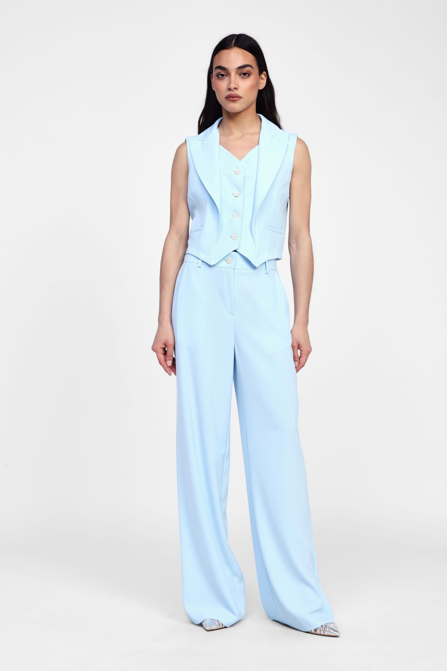 \n High-waisted palazzo trousers\n Enter a world of spontaneity with these high-waisted palazzo trousers. Perfect for women who like to stand out with sophisticated details, these trousers offer unique comfort without sacrificing charm. Ideal for creative combinations, they are the perfect addition to your feminine and sophisticated wardrobe.\n