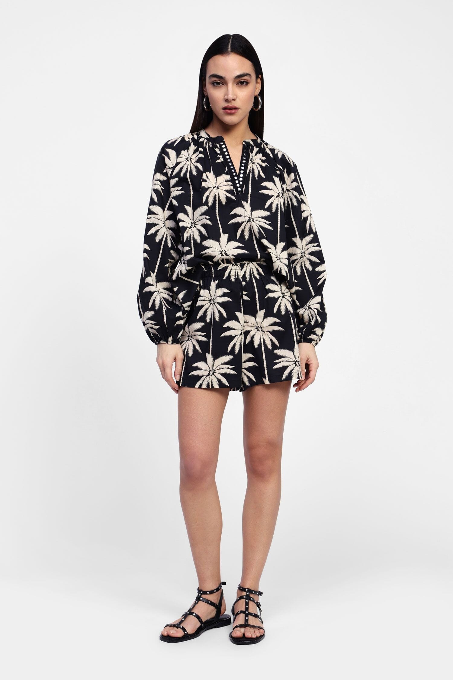 Shorts with palm print