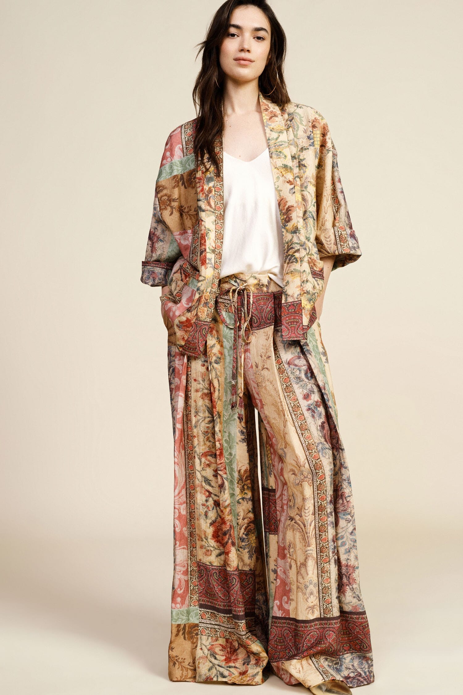 Explore a fusion of comfort and sophistication with these patterned palazzo trousers. The loose silhouette offers a touch of elegance, while the detailed design captures the essence of femininity. Perfect for a relaxed day or a special evening, they add a touch of sophistication to your everyday wardrobe.