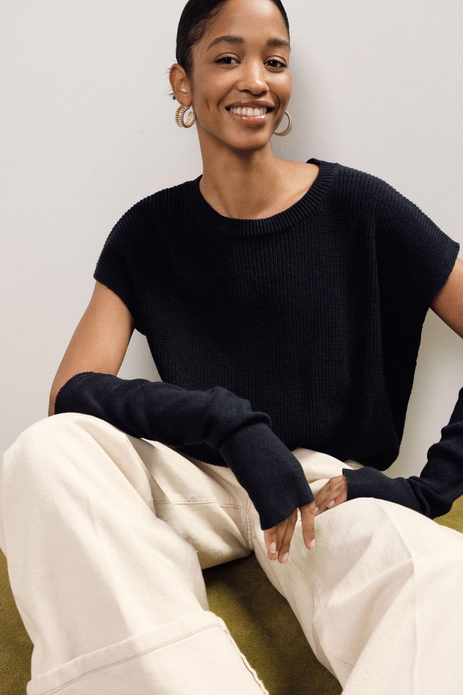 Enjoy changing your style every day with this softly knitted top with a round neckline. The detachable sleeves add an original touch and allow you to adapt the look to your day, so you can feel comfortable and creative from morning to night.