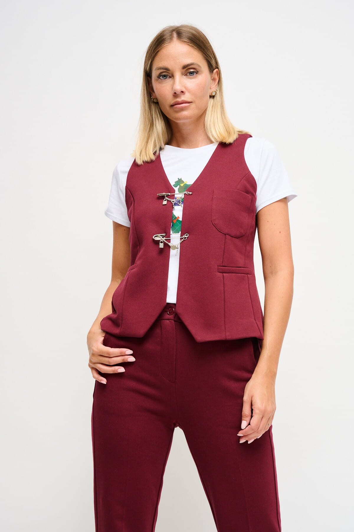 Plush waistcoat, characterised by decorative pin fastening. Perfect to match with the matching trousers and jacket for an elegant and trendy outfit, ideal for a casual chic look.