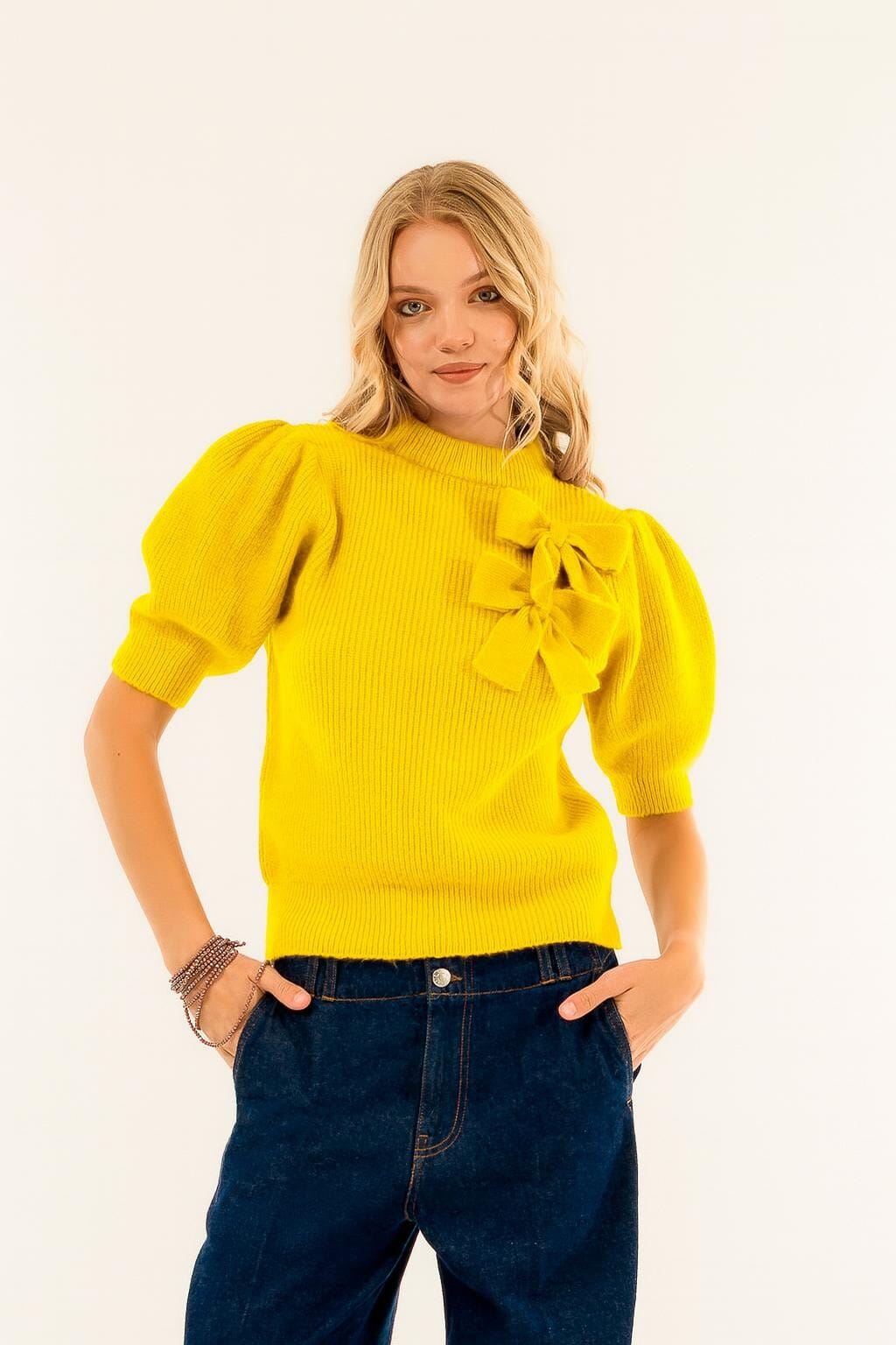 Soft lines, puff sleeves and refined decorative bows turn this sweater into an iconic and sophisticated garment. Perfect to enhance your everyday style with a romantic and exclusive touch. Let yourself be won over by its femininity.