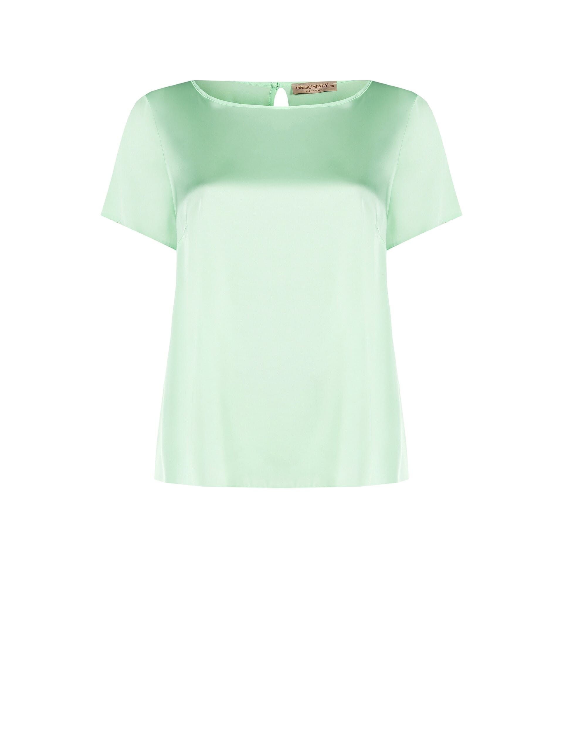Fluid Rinascimento Curvy top in smooth silk-effect fabric, soft at the waist to enhance the silhouette without marking. Clean round neckline and drop opening at back with small button. Perfect with trousers or skirts for the office or for everyday chic.