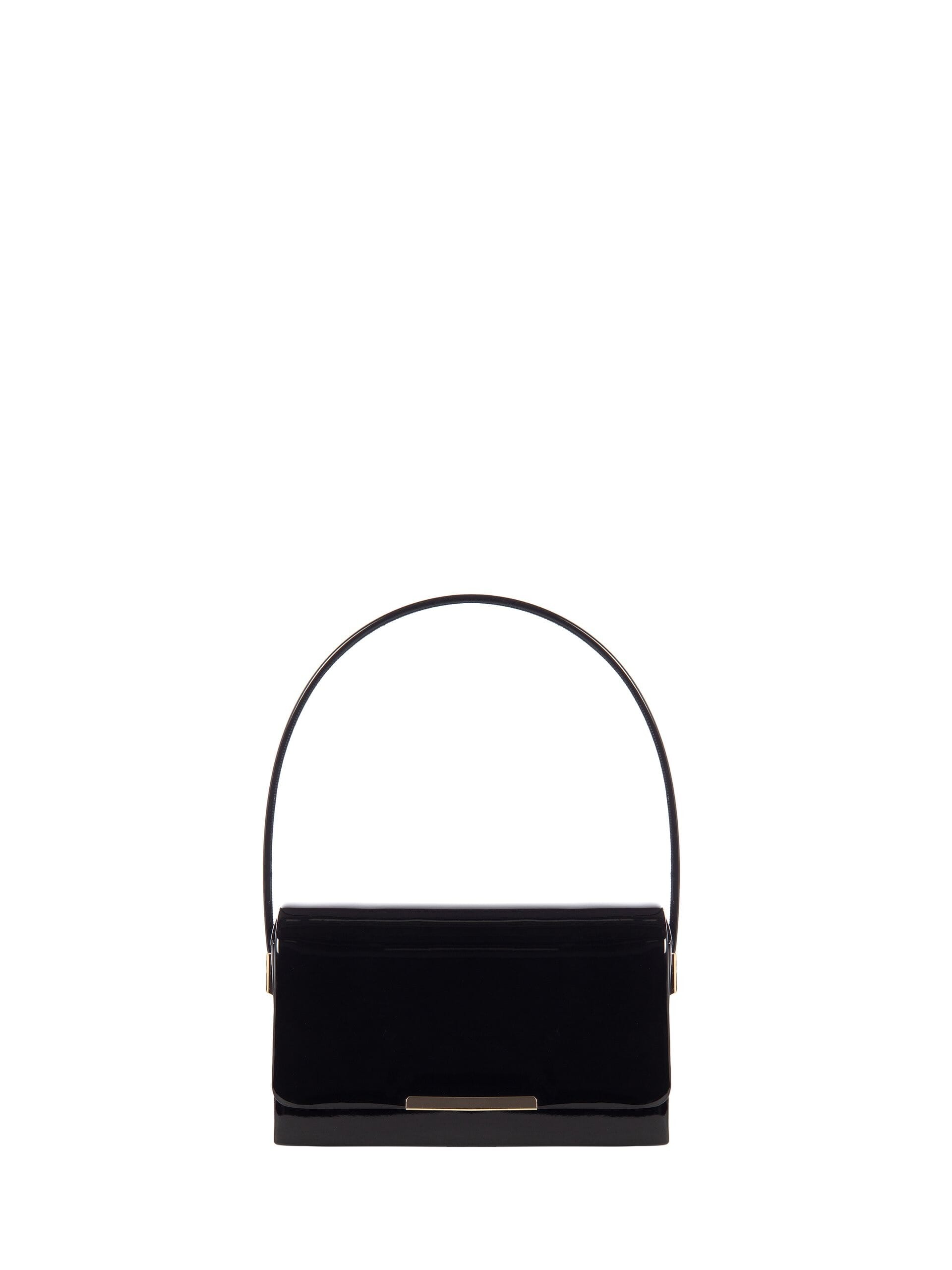 Mini shoulder bag with a compact silhouette in glossy patent leather that enhances every movement. Structured flap with metal insert and slim handle that stays elegant on the wrist. Perfect for parties, ceremonies and evenings when you carry only the essentials.