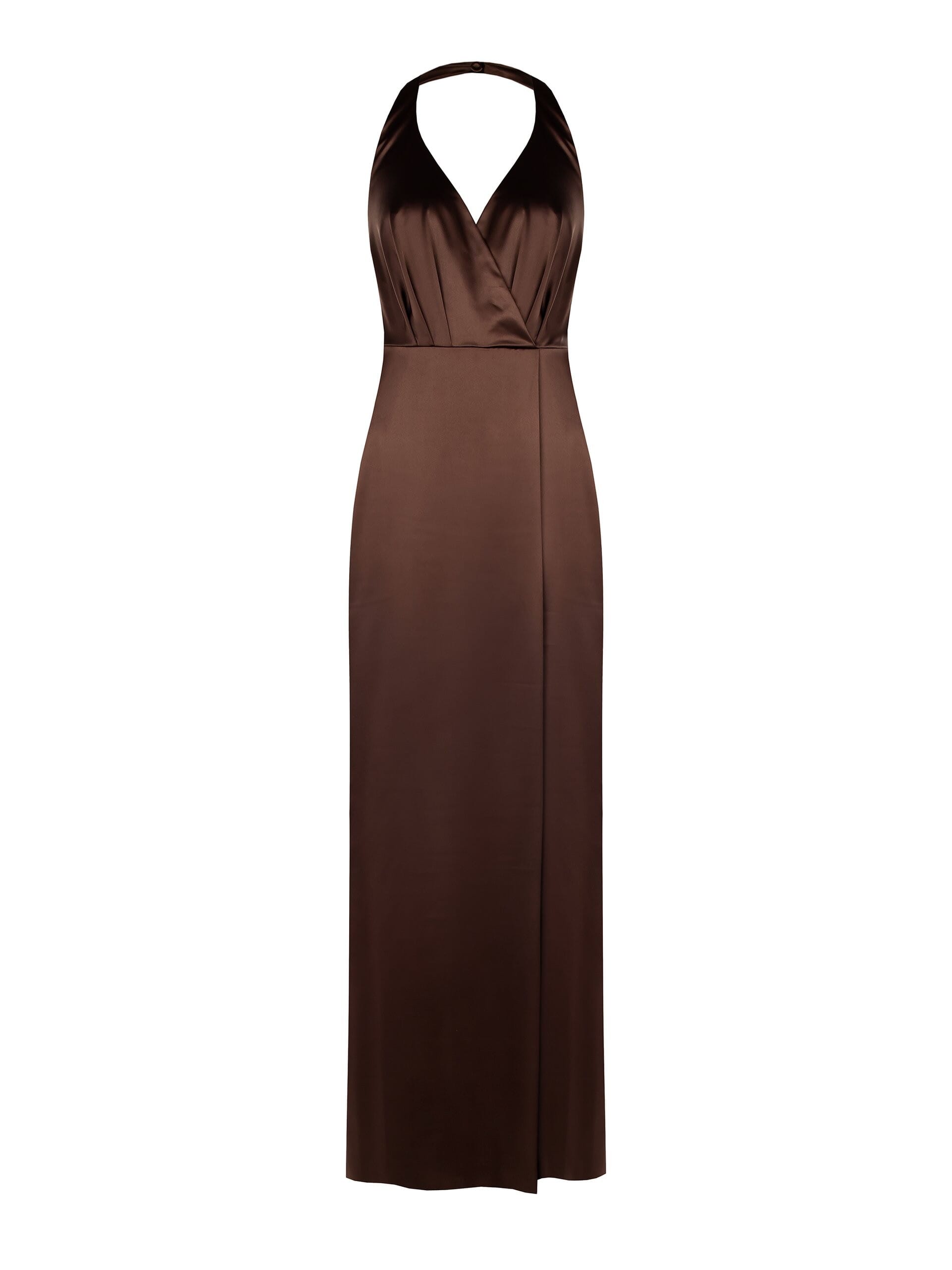 Rinascimento signs a long garment with a slim fit that slims the silhouette. Made of fluid, slightly stretch satin, it caresses the body with comfort. Crossed V-neckline and American back enhance the décolleté; concealed back zip. Perfect for ceremonies, parties and special evenings.