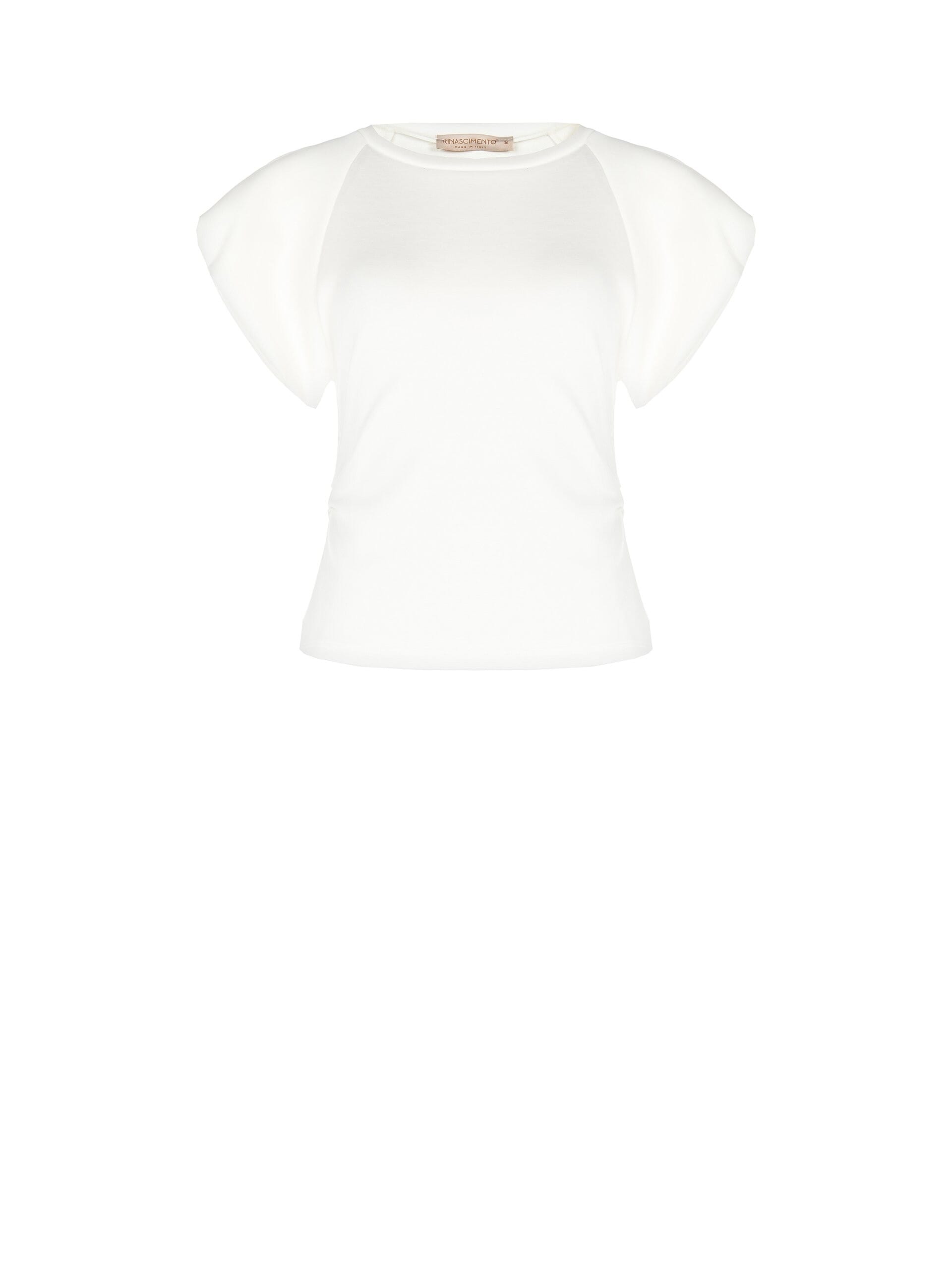 Clean lines and a soft fit that follows the silhouette, in soft stretch jersey with more structured inserts on the sleeves. The essential round neckline and volume sleeves add character without sacrificing comfort. Perfect from the office to leisure time with trousers or high-waisted skirts.