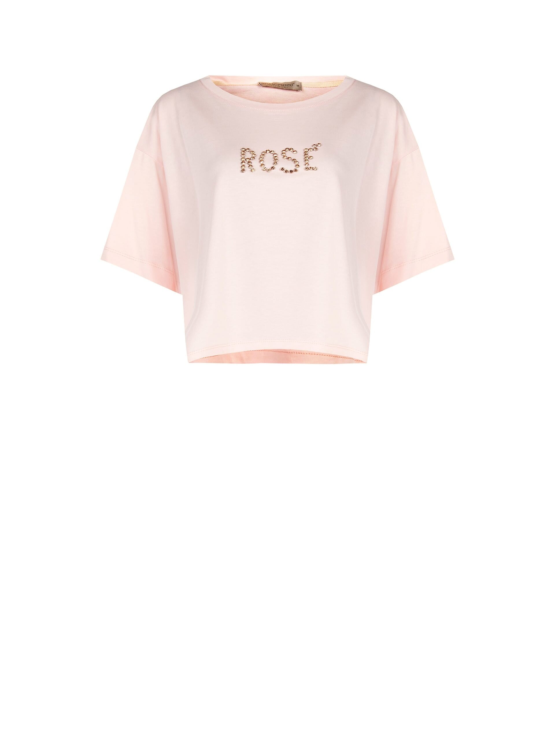 A short, soft cut in cotton jersey that caresses the skin. Rhinestone-embroidered "ROSÉ" lettering illuminates the front, while the wide sleeves and clean neckline slim the figure. Perfect for your everyday chic, from aperitifs to weekends in the city.