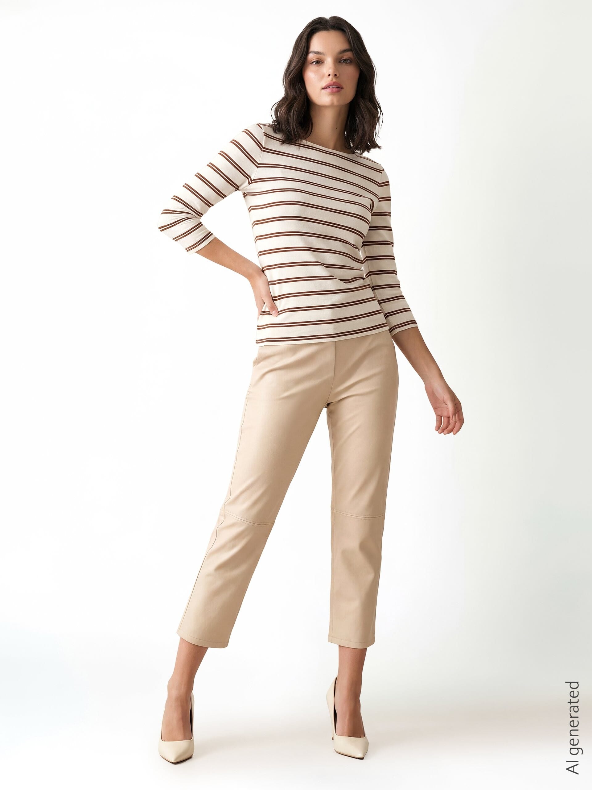 Striped jersey sweater in soft, slightly stretchy jersey with a fitted fit that enhances the silhouette without being tight. Round neckline with slight gathering and metallic detail on the back. Perfect with denim and suits for an everyday look, from the office to the weekend.