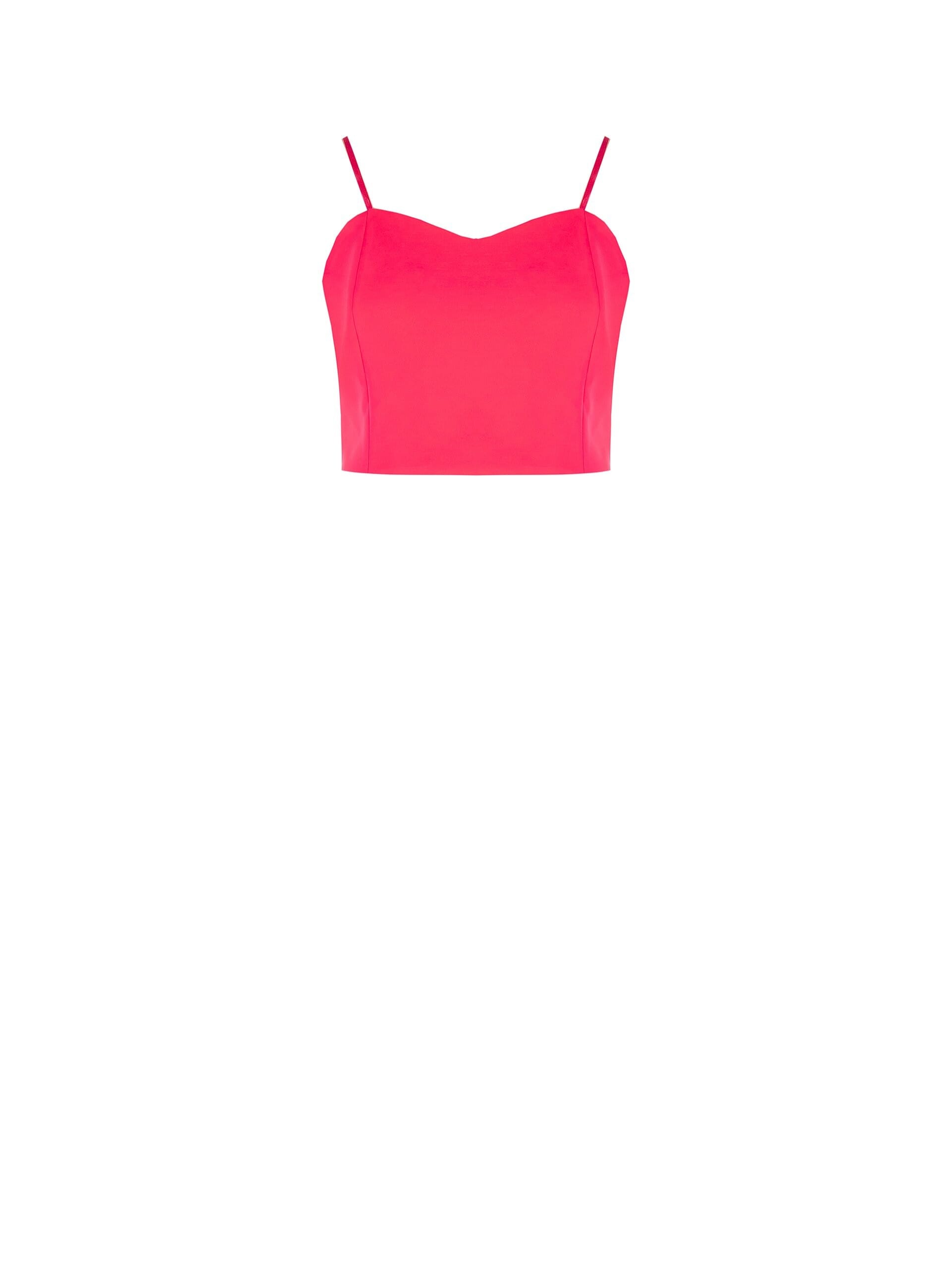 Fitted short top enhances the silhouette with comfort and support. The smooth, structured technical fabric ensures a clean fit; the sweetheart neckline and thin straps add femininity. Perfect for parties, cocktails or elevating everyday looks.