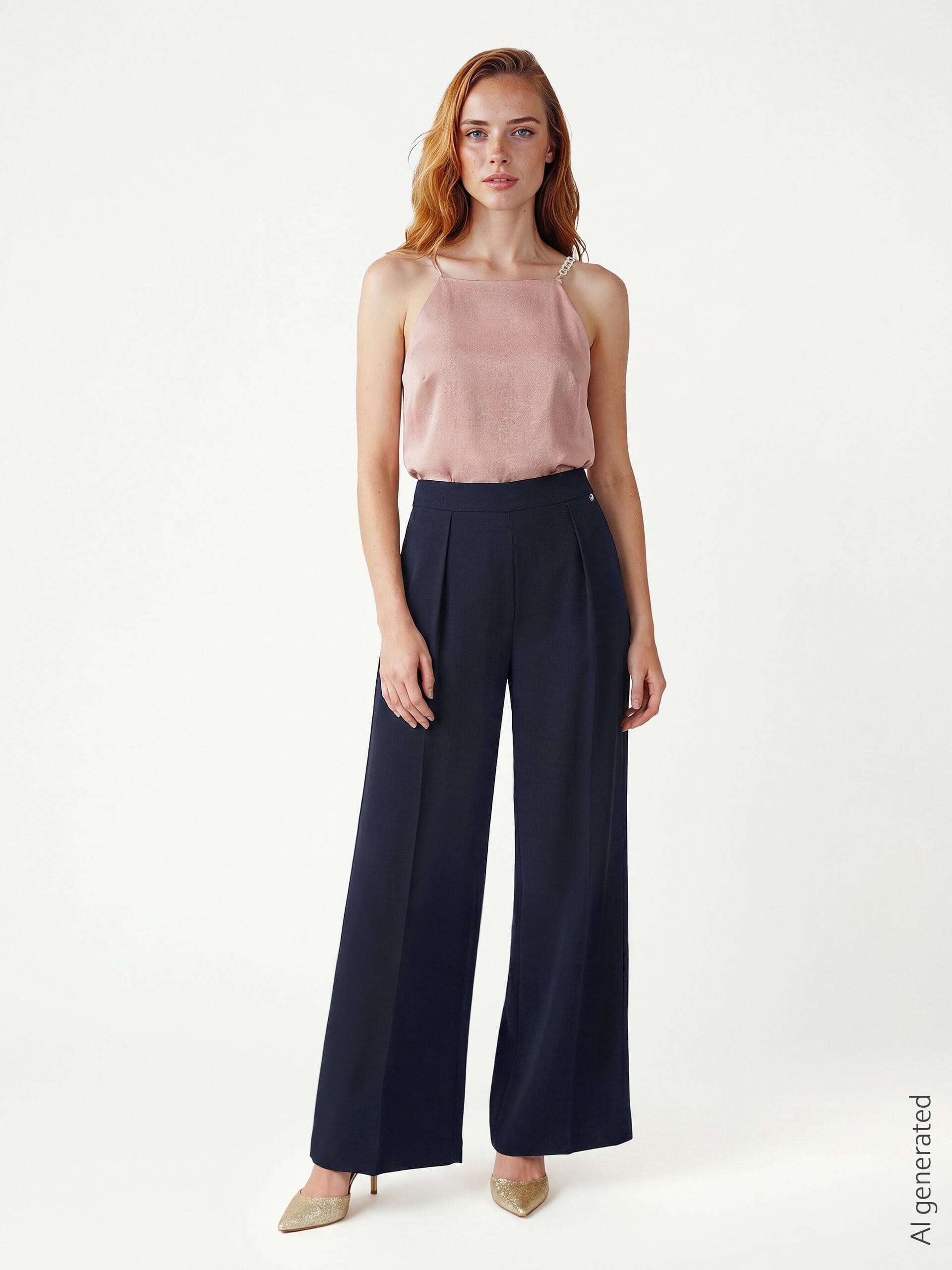 A sleeveless blouse with a fluid fit, designed to caress the silhouette with lightness. The delicately luminous textured fabric provides comfort and movement, while the jewel detail shoulder strap and the drop opening at the back make it special. Perfect from the office to an aperitif.