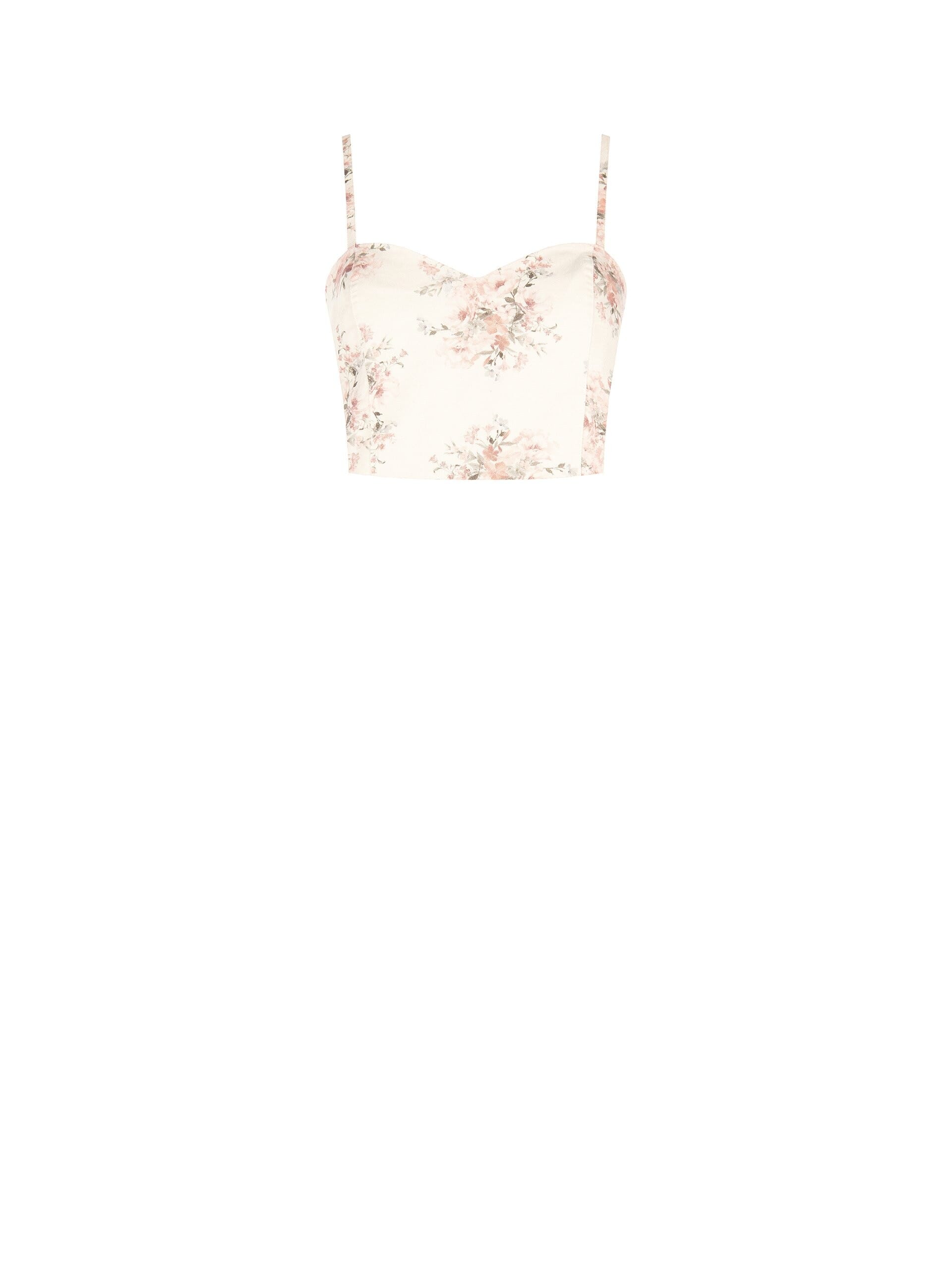 Rinascimento bustier crop with close-fitting yet comfortable lines, in soft, slightly structured fabric. The sweetheart neckline enhances the décolleté, the thin straps and the back zip outline the figure. Perfect with high-waisted trousers for cocktails, parties and special occasions.