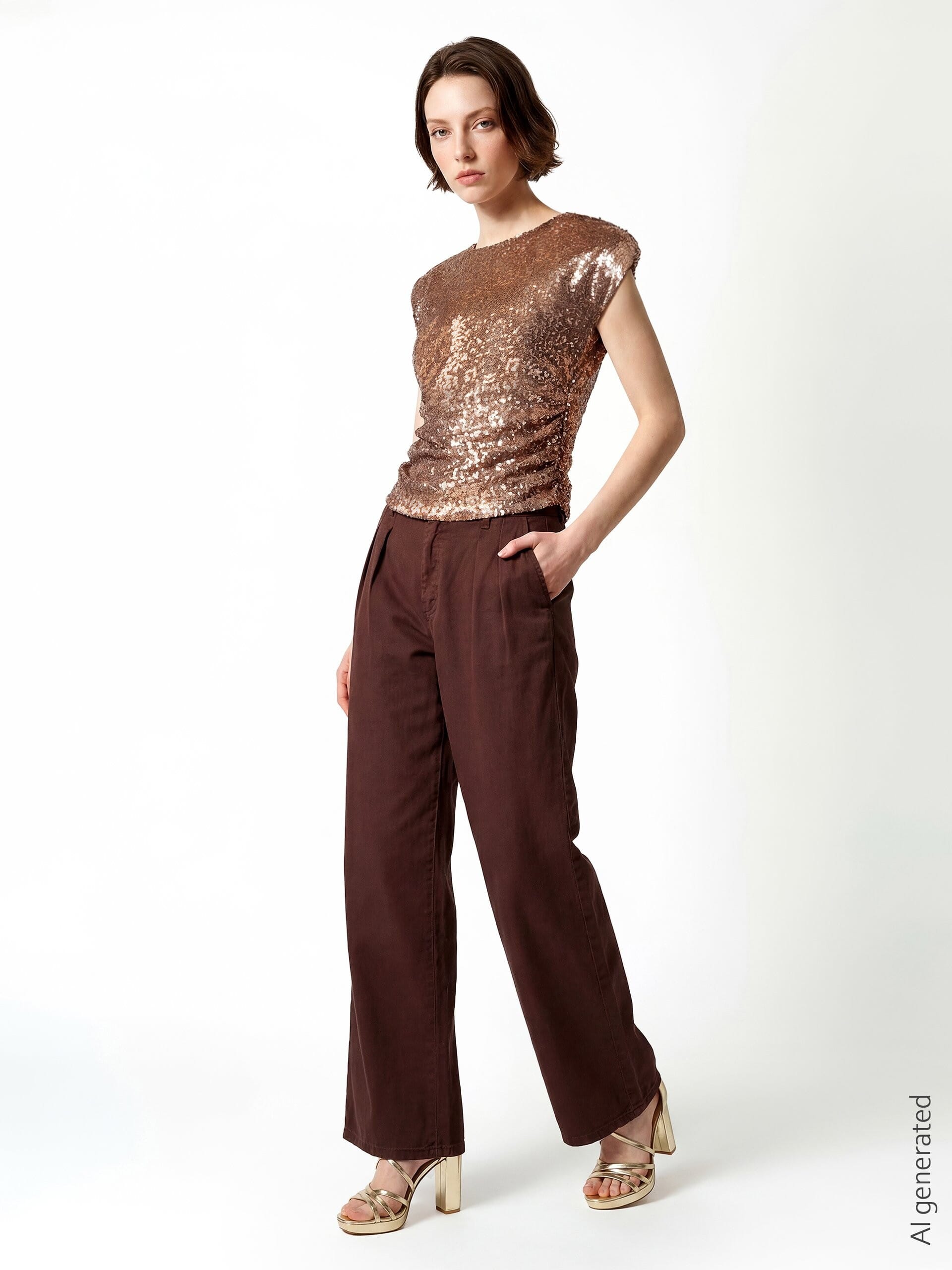Rinascimento blouse with a slim fit that enhances the silhouette, entirely embroidered with sequins on a soft, slightly stretchy base. Round neckline, structured shoulders and buttoned back drop. Perfect for parties, cocktails and special dinners.
