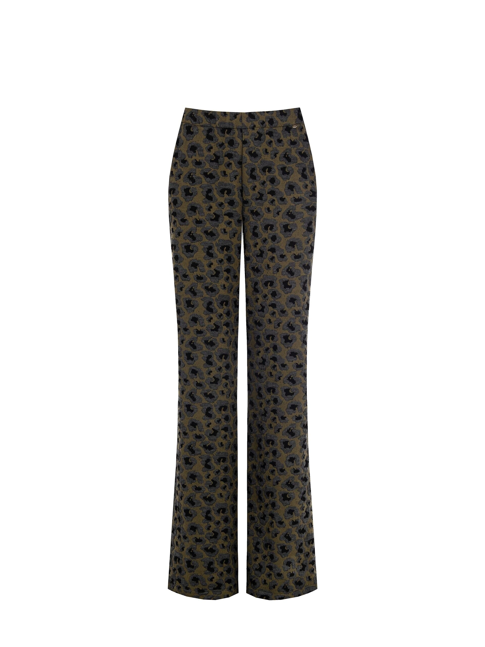 Flare line with a slim fit, designed to follow the silhouette with comfort. The stretch jacquard fabric with animalier texture and the clean-cut regular waist enhance the waist and elongate the figure. Perfect from the office to cocktail hour.