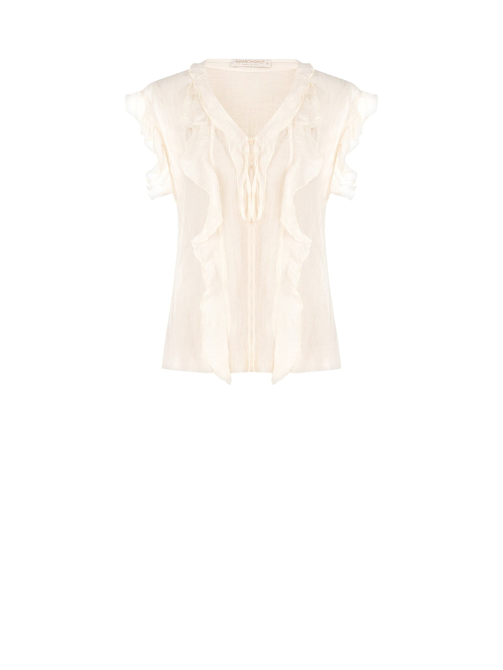 Semi-transparent Crinkled Viscose Blouse with V-Neckline