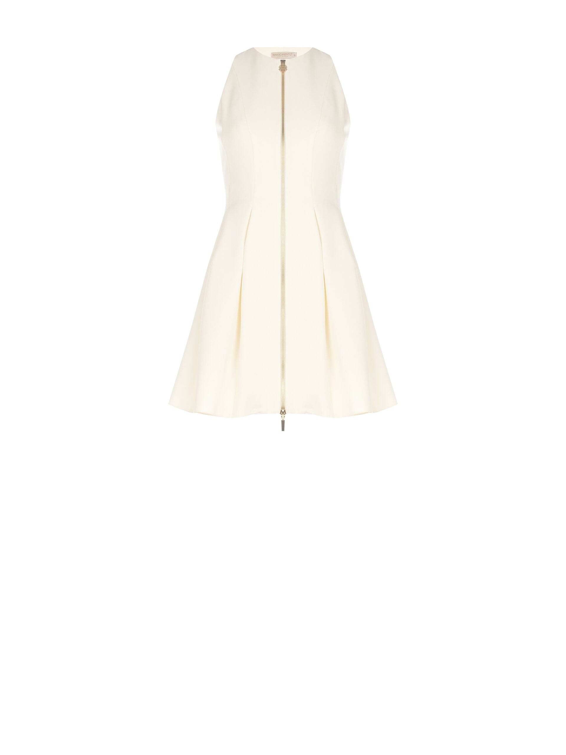 Rinascimento flared minidress in fluid and slightly structured technical fabric that defines the waist and slims the silhouette. American neckline and front zip with metallic logo detail for a discreet glam touch. Perfect for parties and special evenings.