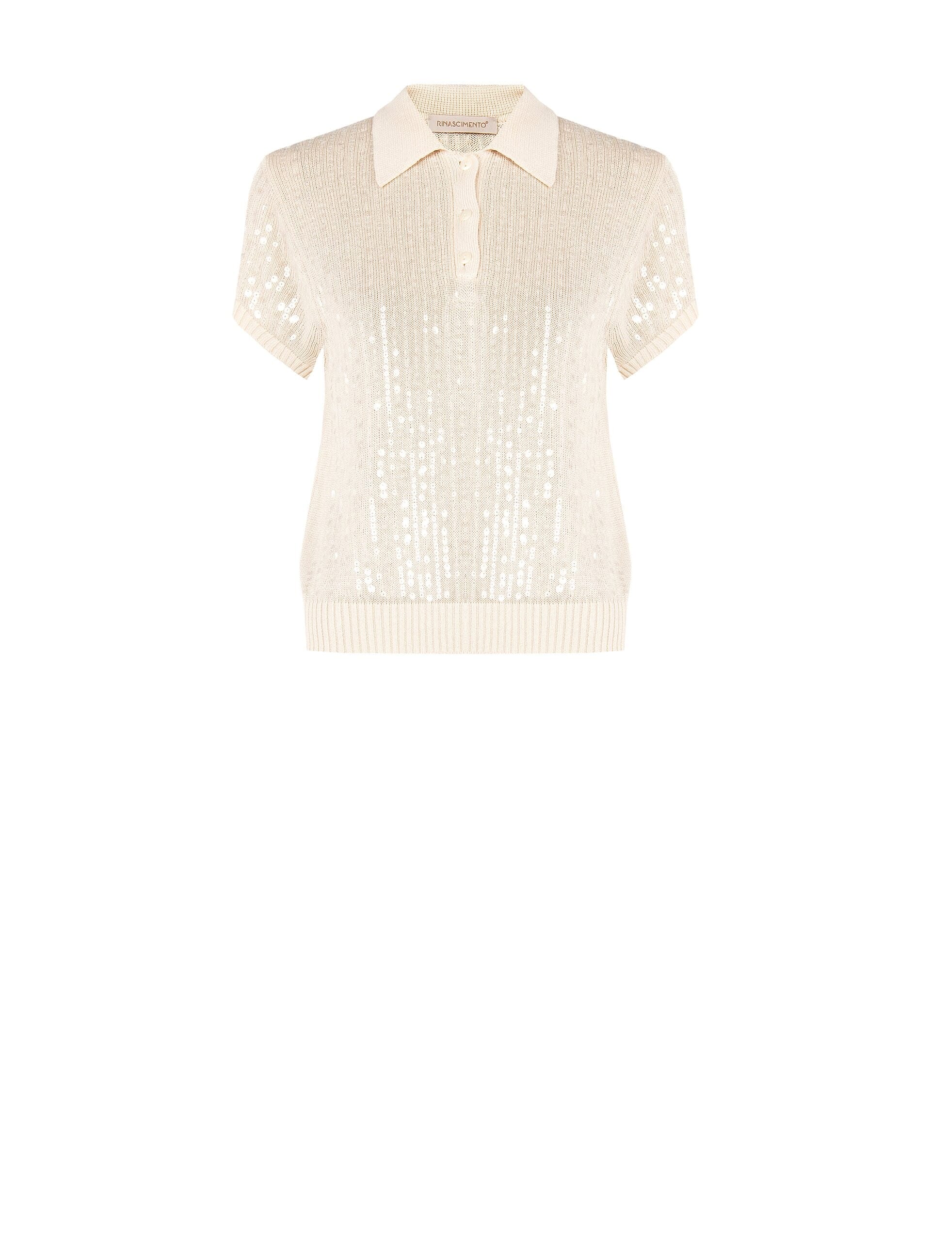 Transparent Sequins Covered Knitted Polo Shirt Rinascimento