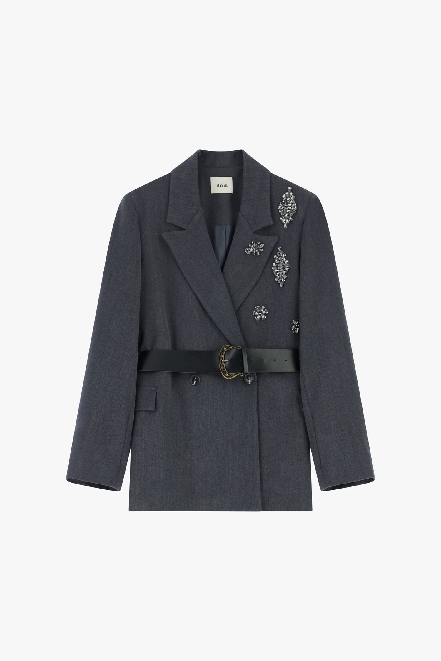 Blazer à double boutonnage avec ceinture et appliques ornées de bijoux Dixie