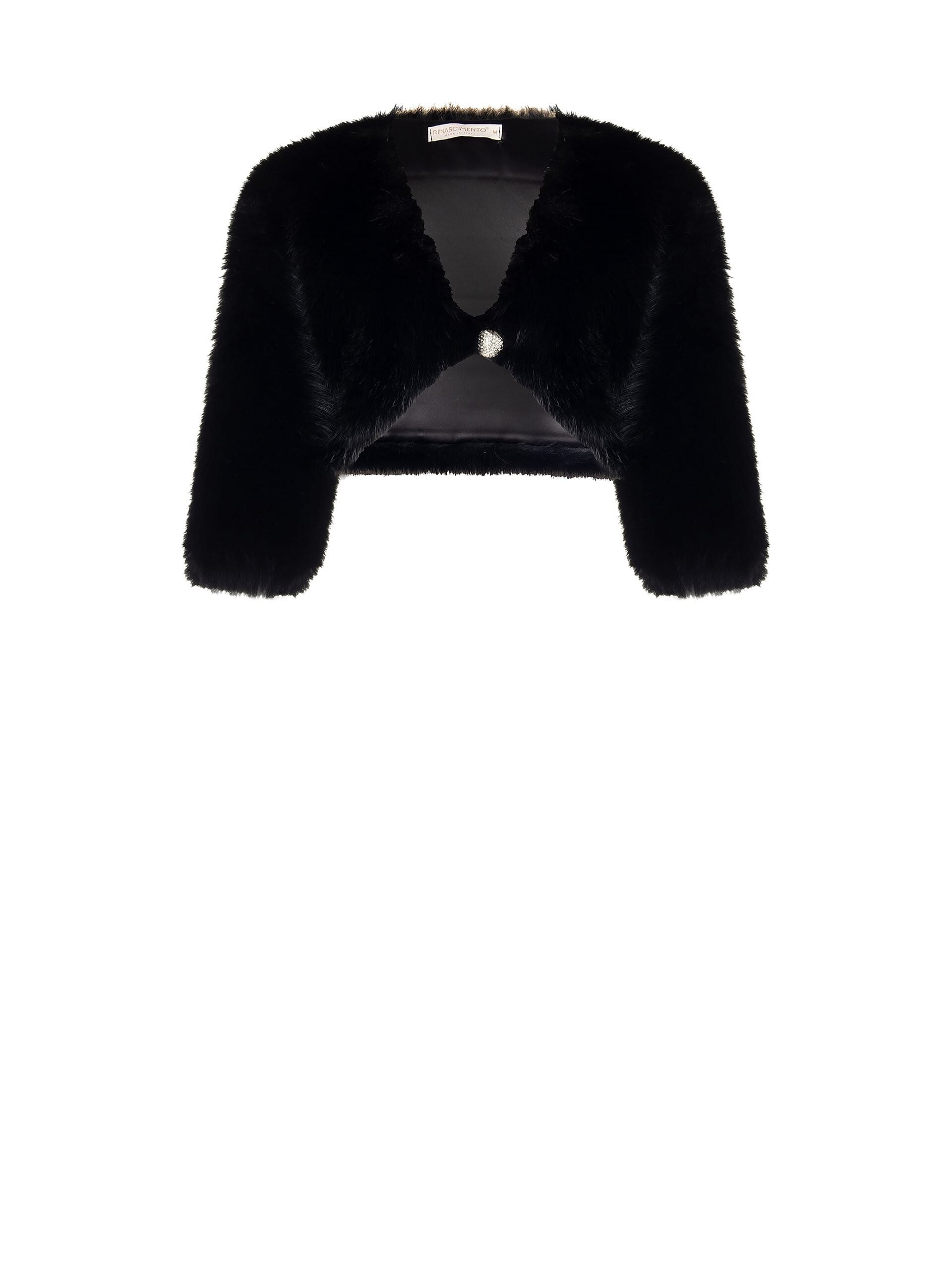 Prix réduit ! Boléro Rinascimento en fourrure synthétique et boutons ornés de bijoux Expand