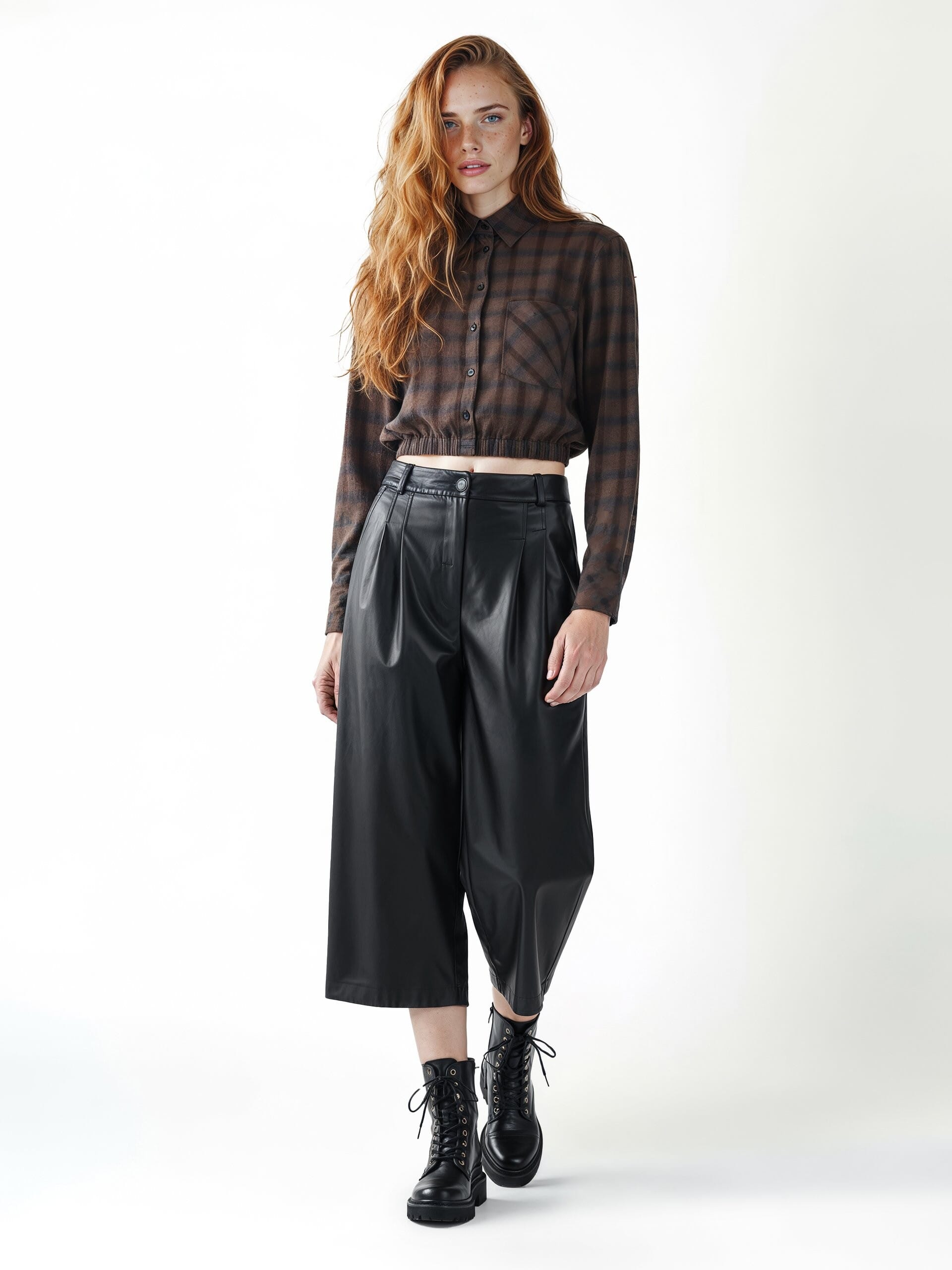 Top court Rinascimento à la coupe décontractée, avec bas élastiqué qui définit la taille sans serrer. Tissu doux avec une main chaude, effet carreaux. Col classique et poche plaquée en biais pour une touche graphique. Polyvalent pour la journée : parfait avec un jean et une taille haute pour une tenue décontractée de bureau ou de loisirs.