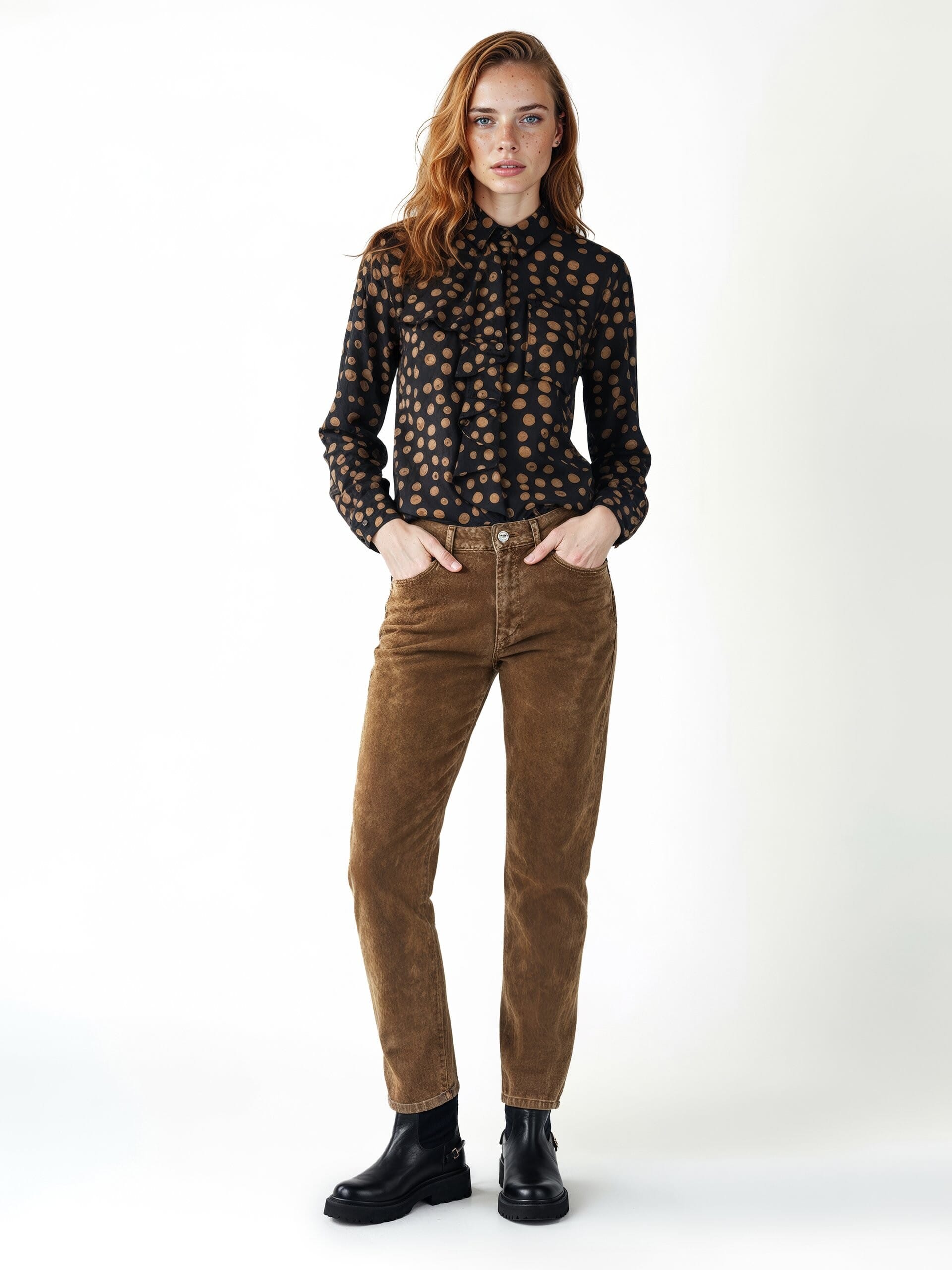 Top fluide en Rinascimento avec une coupe ample qui affine la silhouette. Matière légère et soyeuse avec une texture satinée, agréable sur la peau. Volant central romantique avec nœud à l'encolure et poche plaquée : des détails qui rehaussent n'importe quel look. Parfait du bureau à l'apéritif, il se marie naturellement avec un jean ou un tailleur.