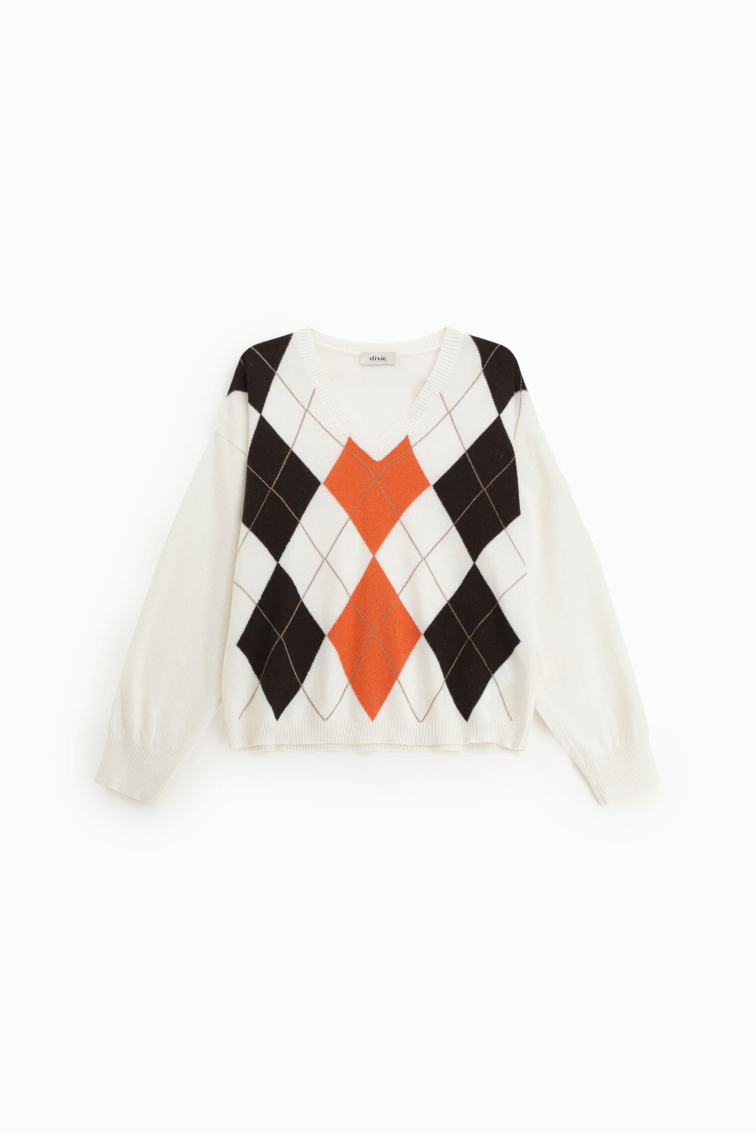 Crew Neck Sweater with Argyle Rhombus Pattern Dixie