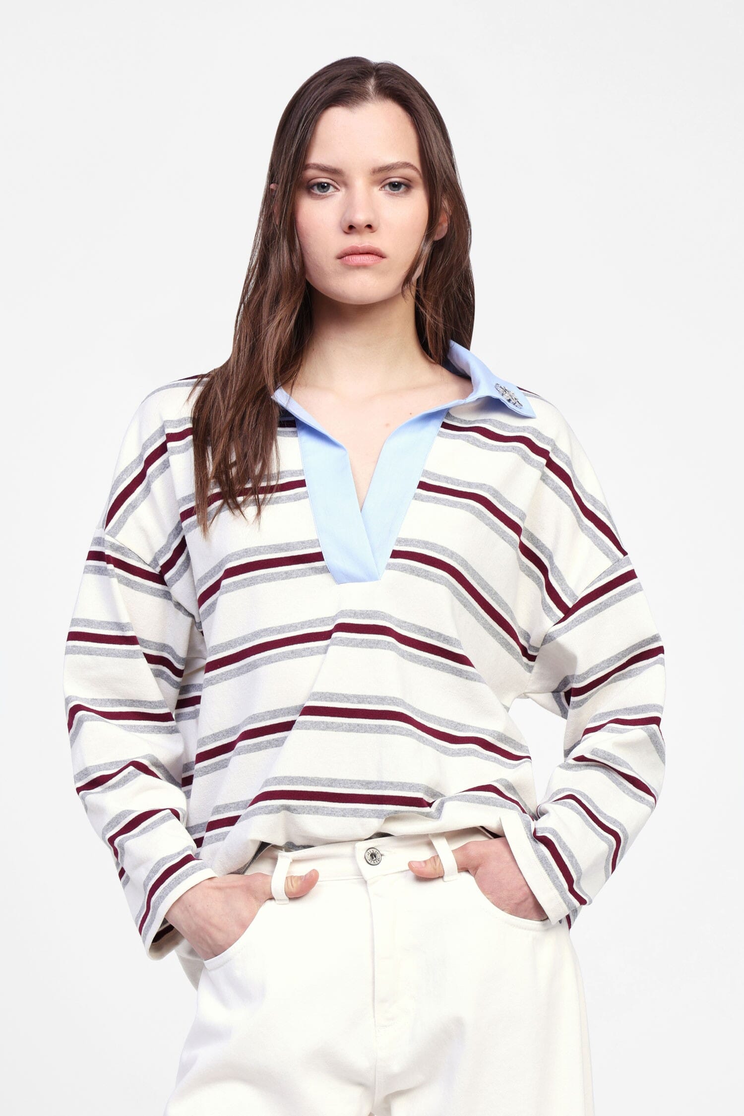 Prix réduit ! Dixie - Pull rayé à col chemise Expand