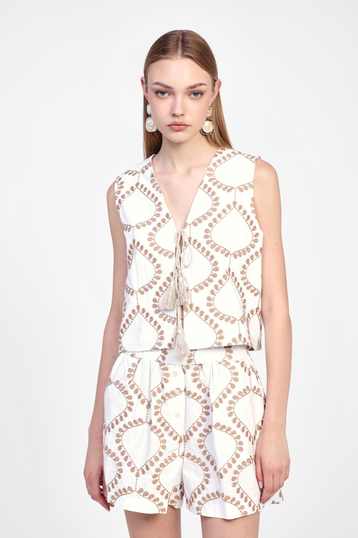 Laissez-vous séduire par le charme de ce gilet sans bretelles, idéal pour les journées décontractées qui requièrent une touche d'originalité. Le motif imprimé ajoute de la personnalité et de la polyvalence, ce qui le rend idéal pour toutes les occasions. Il s'associe facilement à de nombreuses tenues, créant un look à la fois décontracté et raffiné.