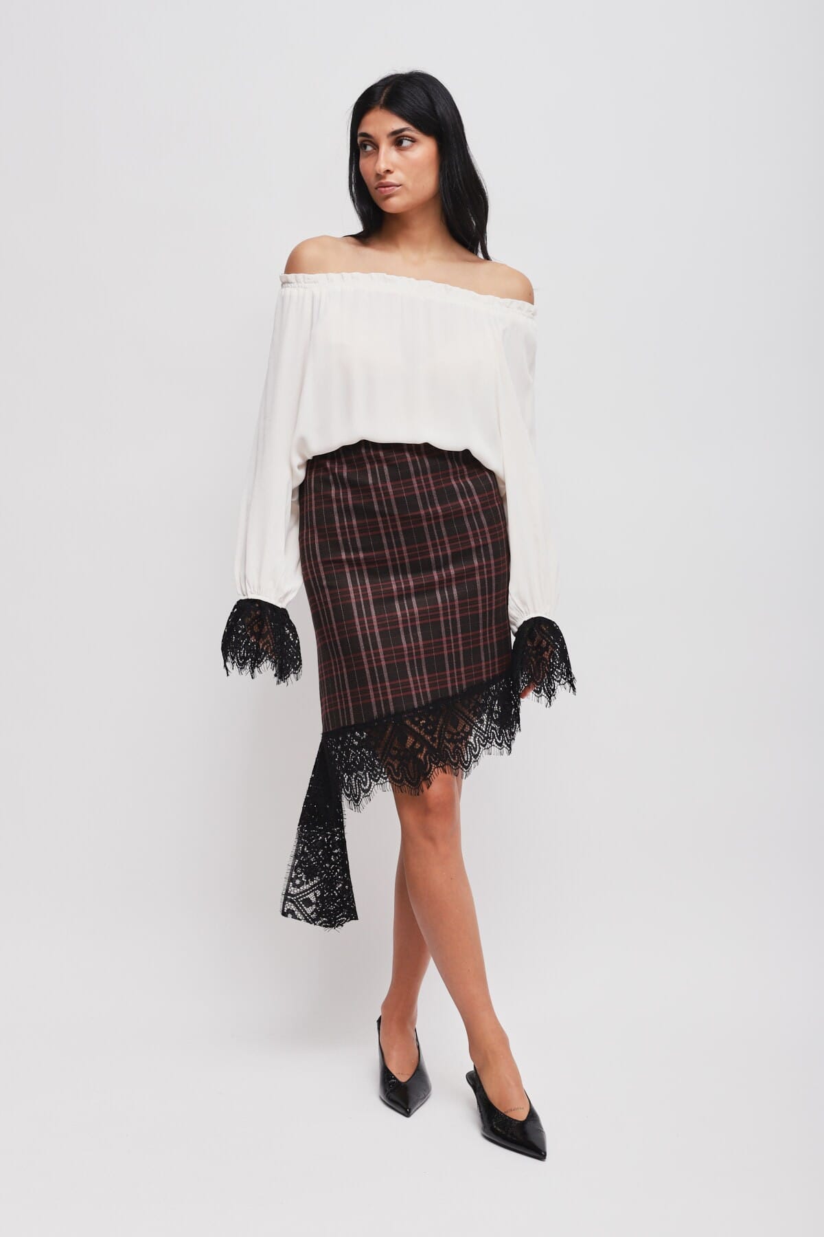 Jupe à carreaux avec dentelle Maryley