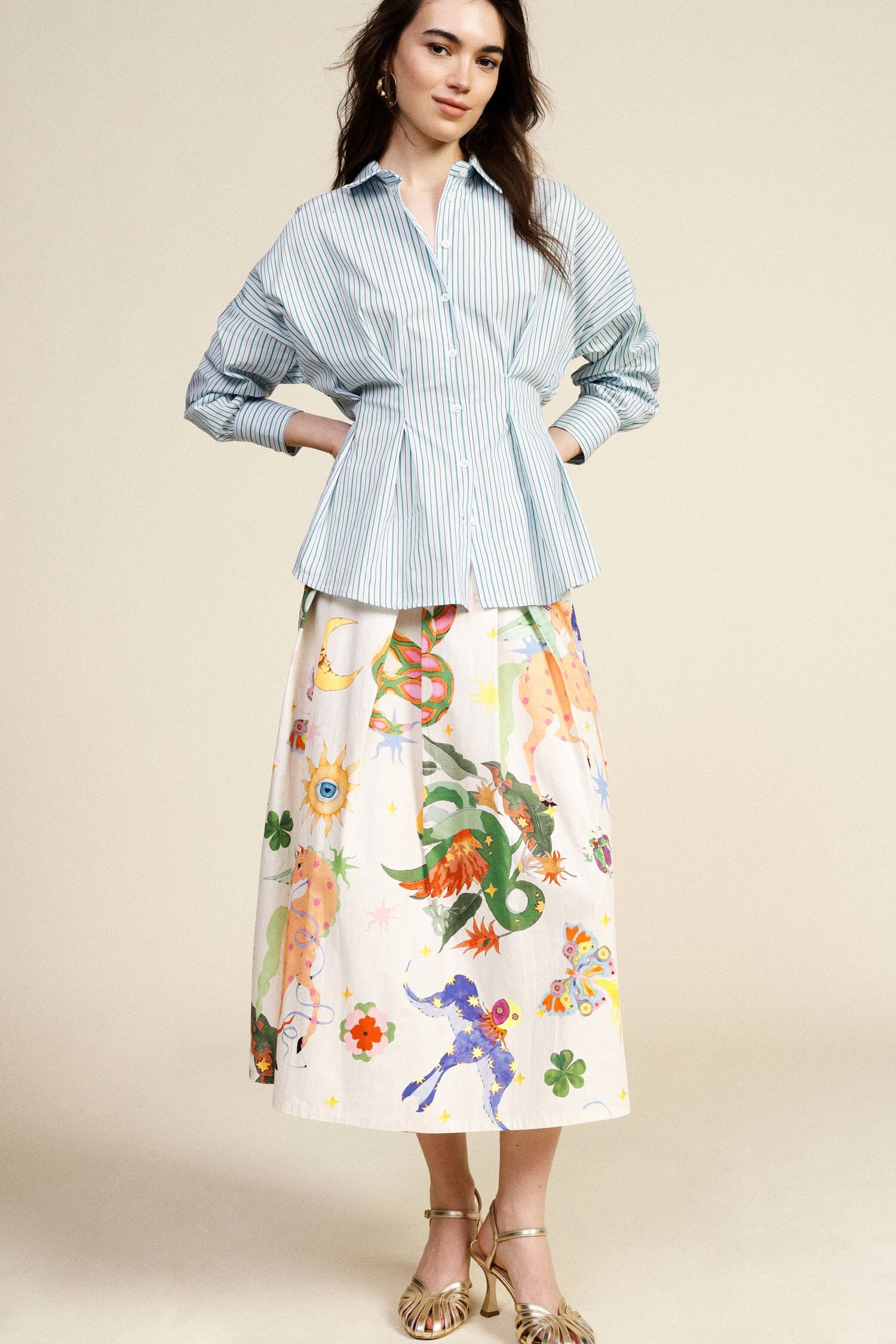 Laissez-vous envelopper par la magie de cette jupe à plis, parfaite pour mettre en valeur votre féminité à chaque pas. L'imprimé vibrant se tisse harmonieusement sur toute sa longueur, attirant l'attention sans effort. Idéale pour les jours où le confort s'allie à un style audacieux, elle vous accompagnera dans toutes vos aventures quotidiennes.