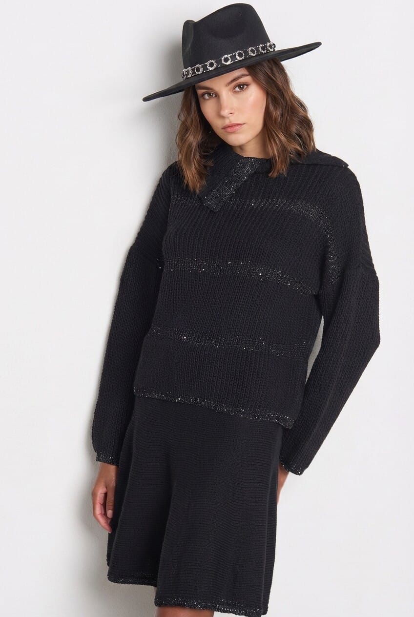 Jupe en maille à la ligne évasée, enveloppante mais confortable sur les hanches. Le tissage accompagne le mouvement, tandis que l'ourlet illuminé par des micro strass définit la silhouette. Parfaite du bureau à l'apéritif, avec des bottes ou un décolleté.