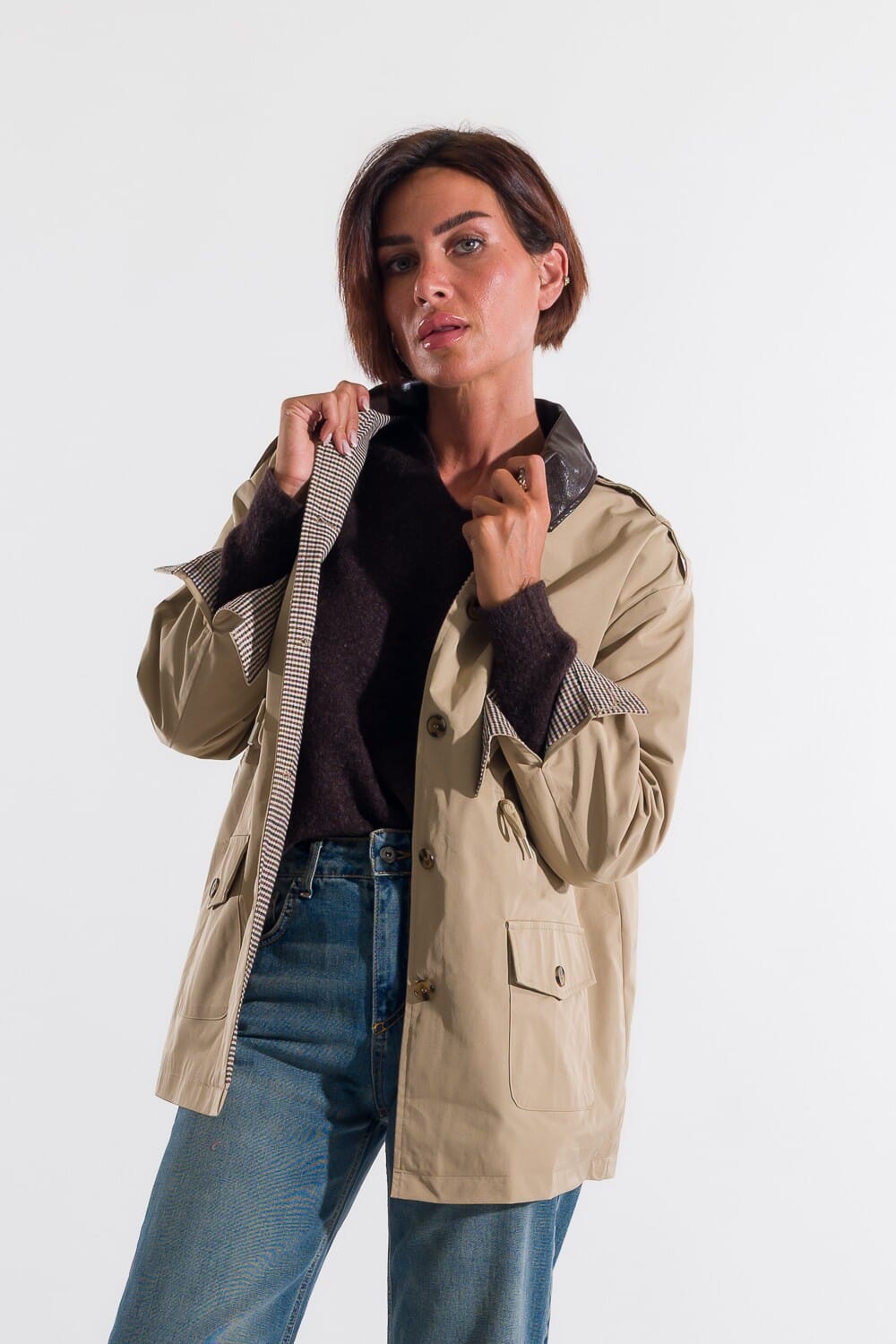 Kontatto signe une veste à coupe droite ajustable à la taille : le cordon de serrage sculpte la silhouette sans sacrifier le confort. En tissu technique léger avec intérieur micro-motif, elle présente un col contrasté et de grandes poches à rabat. Parfait du bureau au week-end, sur un jean ou une robe.