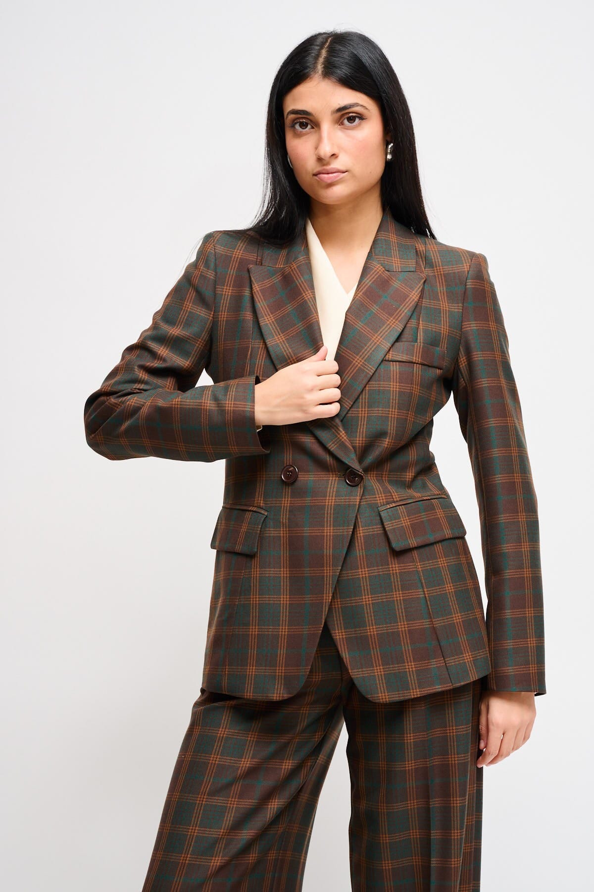 Blazer à carreaux Maryley à la coupe sculptée : épaules définies et taille façonnée pour une silhouette fuselée. Matière souple et consistante, agréable sur la peau. Larges revers, double boutonnage et poches à rabat pour une touche tailleur. Parfait pour le bureau et l'after-work, il se marie avec un jean ou un pantalon assorti.