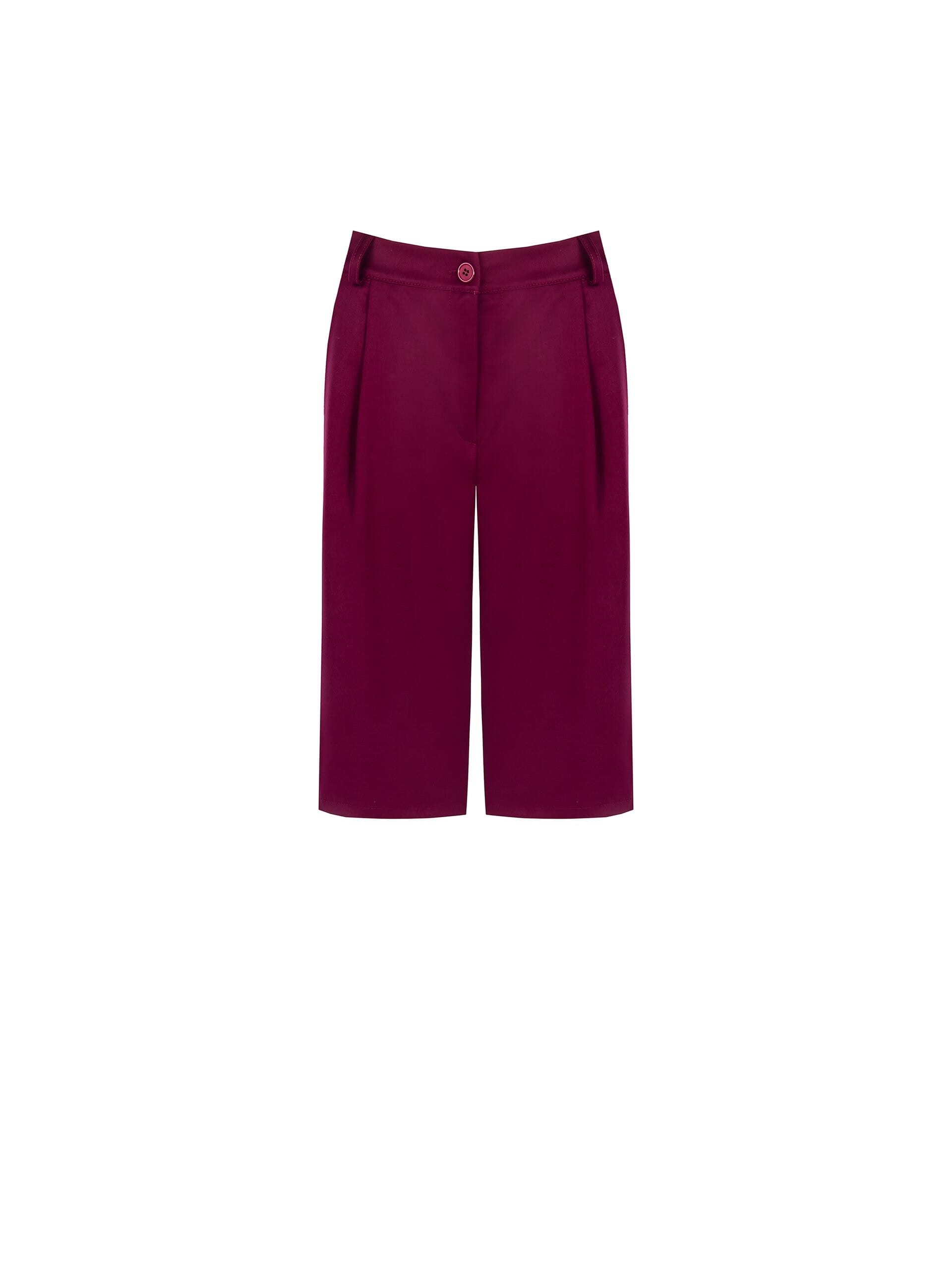 Bermuda à taille moyenne, coupe ample et fluide qui affine la silhouette. Tissu léger à la main douce et légèrement extensible pour un confort tout au long de la journée. Les plis sur le devant et la fermeture boutonnée rehaussent la taille ; poches latérales fonctionnelles. Parfait pour le bureau avec un blazer ou pour les loisirs avec des sandales.