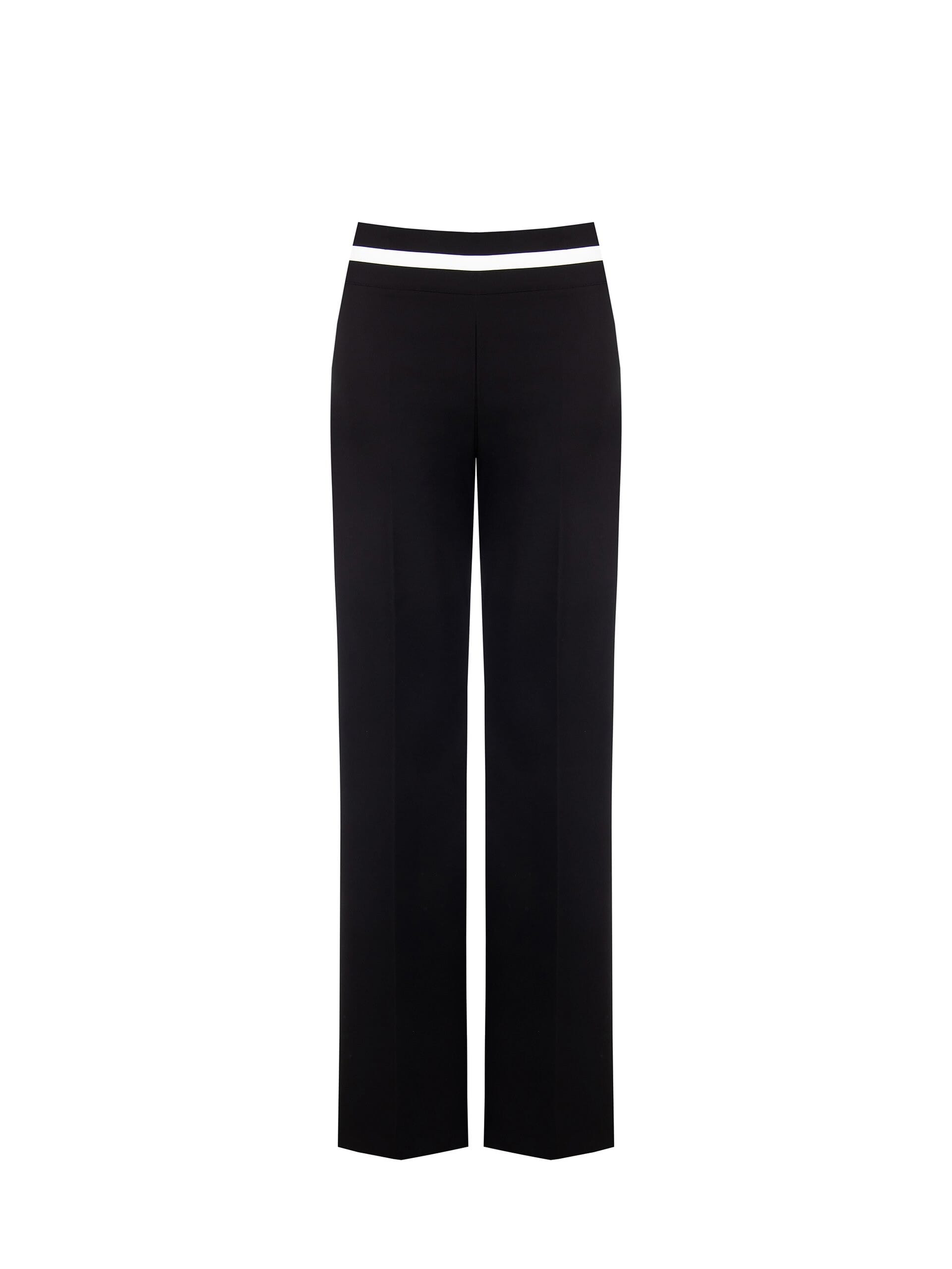 Ligne droite et taille moyenne pour une silhouette élancée. Matière fluide et légèrement extensible qui accompagne les mouvements avec confort. Taille soulignée par une bande bicolore et un pli sur le devant pour une touche ajustée. Parfaites du bureau à l'apéritif, elles se marient facilement avec des blazers et des tops féminins.