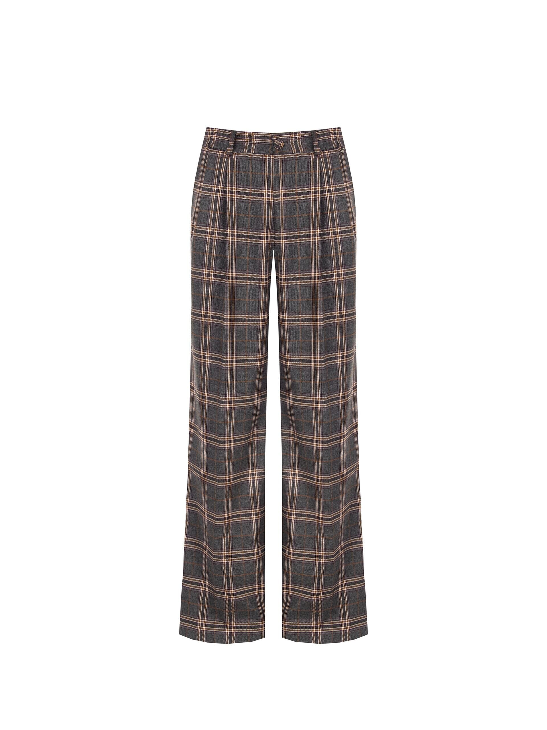 Coupe droite souple qui amincit, taille régulière. Tissu à carreaux à la main compacte et confortable, avec un pourcentage de stretch pour la liberté de mouvement. Le pli repassé et la fermeture à bouton recouvert définissent l'ensemble. Parfait pour le bureau et les loisirs, il peut être porté avec des blazers ou des pulls pour un look soigné et polyvalent.