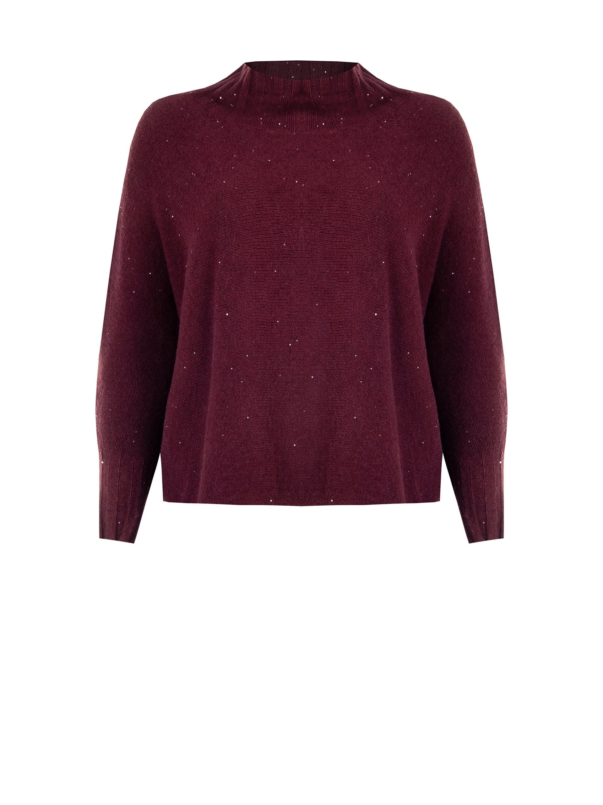 Tricoté avec une coupe souple et ample, conçu pour mettre en valeur les courbes avec confort. Fil doux à effet cachemire, parsemé de micro-paillettes qui s'illuminent discrètement. Col entonnoir côtelé et manches chauve-souris avec poignets ajustés. Parfait pour le bureau et l'apéritif. Rinascimento Curvy.