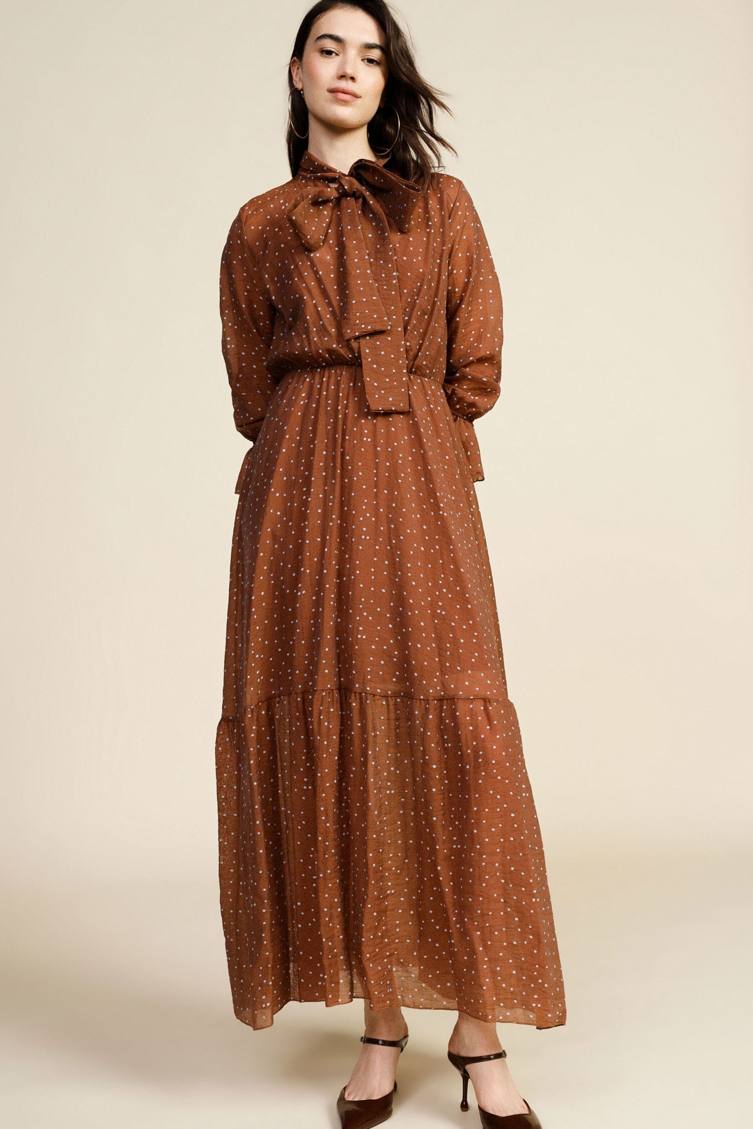Prix réduit ! Robe longue imprimée Micro Polka Dot With Bow Neck Dixie Expand