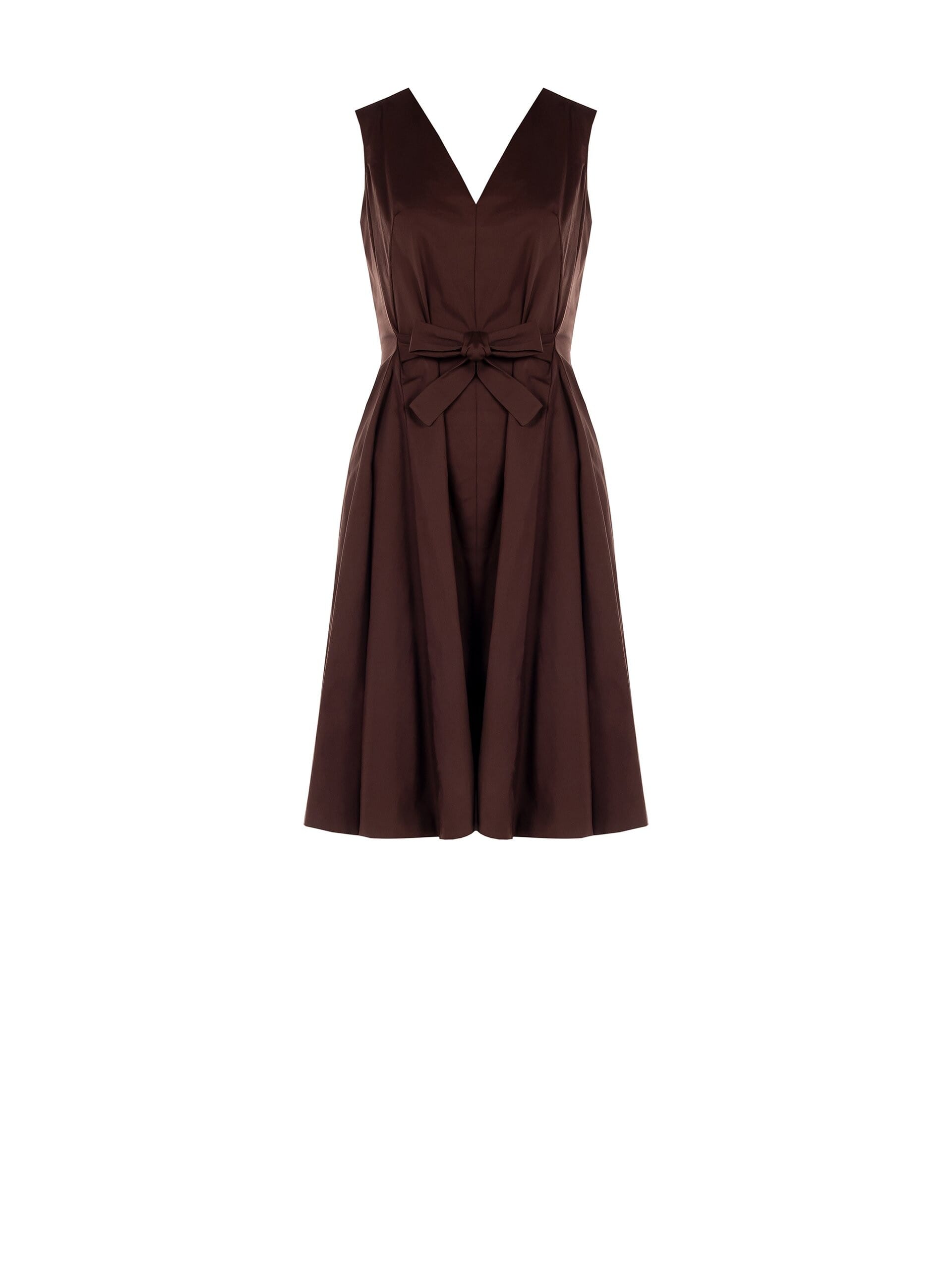 Féminine et polyvalente, cette robe longueur genou à la coupe évasée accompagne vos mouvements et met naturellement votre silhouette en valeur. Dans un mélange de coton stretch à la main compacte, elle se distingue par son double décolleté en V et son nœud à la taille. Parfaite du bureau aux rendez-vous spéciaux.