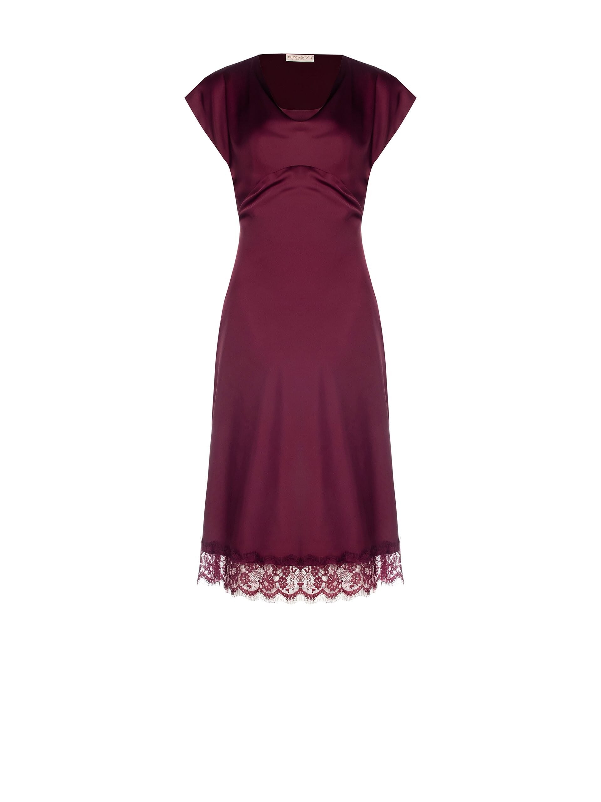 Robe midi Rinascimento avec une coupe amincissante qui met en valeur la silhouette. Satin fluide et doux au toucher, finition en dentelle sur le bas. Encolure drapée douce et manches capuchon pour le confort et la féminité. Parfaite pour les dîners et les soirées, elle peut également être associée à des blazers pour une élégance quotidienne.