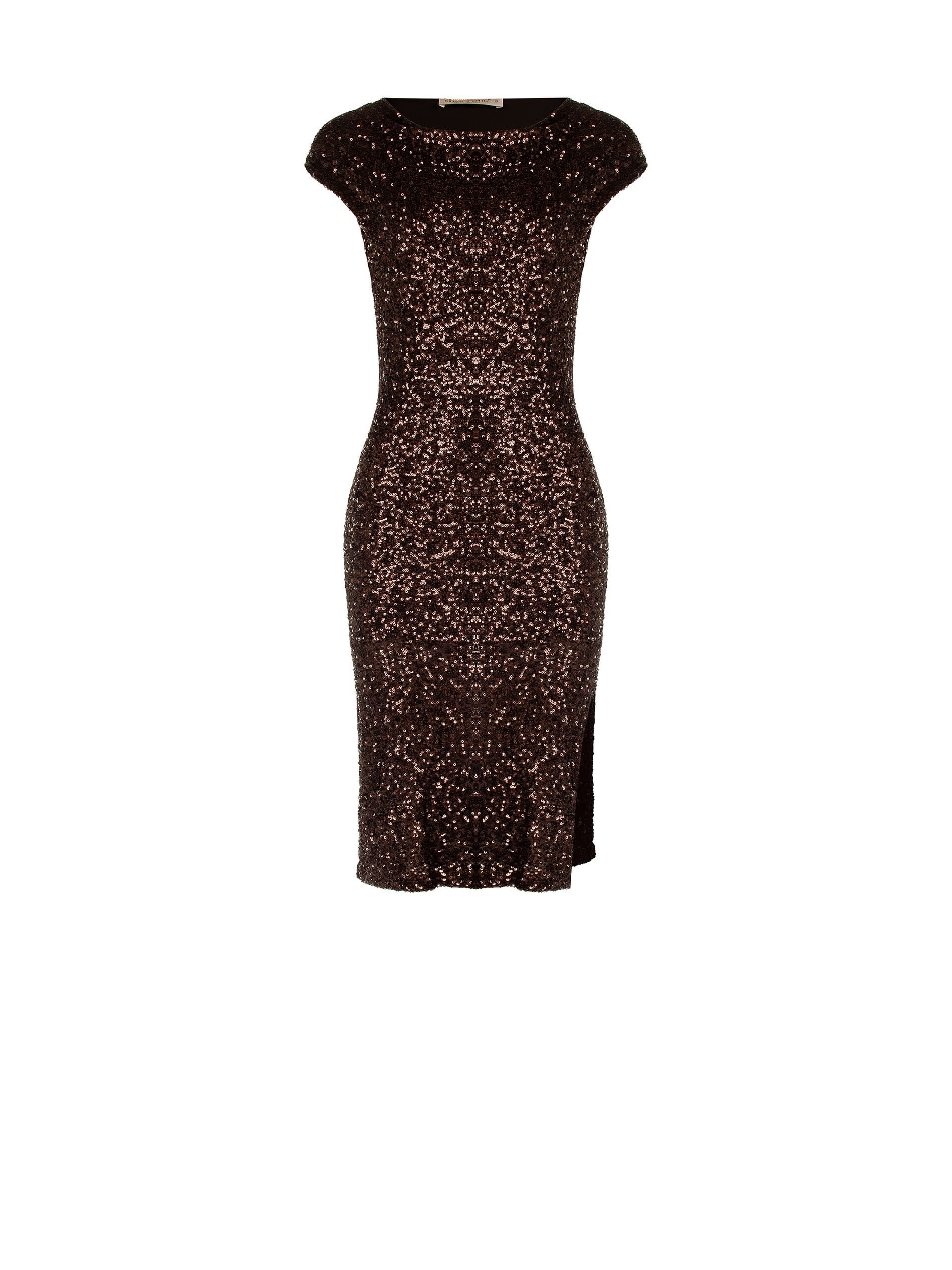 Rinascimento signe une robe midi fourreau à la coupe amincissante qui sculpte la silhouette avec confort. Maille extensible entièrement brodée de paillettes, doublure douce et non transparente. Encolure ronde avec manches capuchon et fente latérale pour une plus grande liberté de mouvement. Parfaite pour les fêtes, les cocktails et les soirées spéciales.