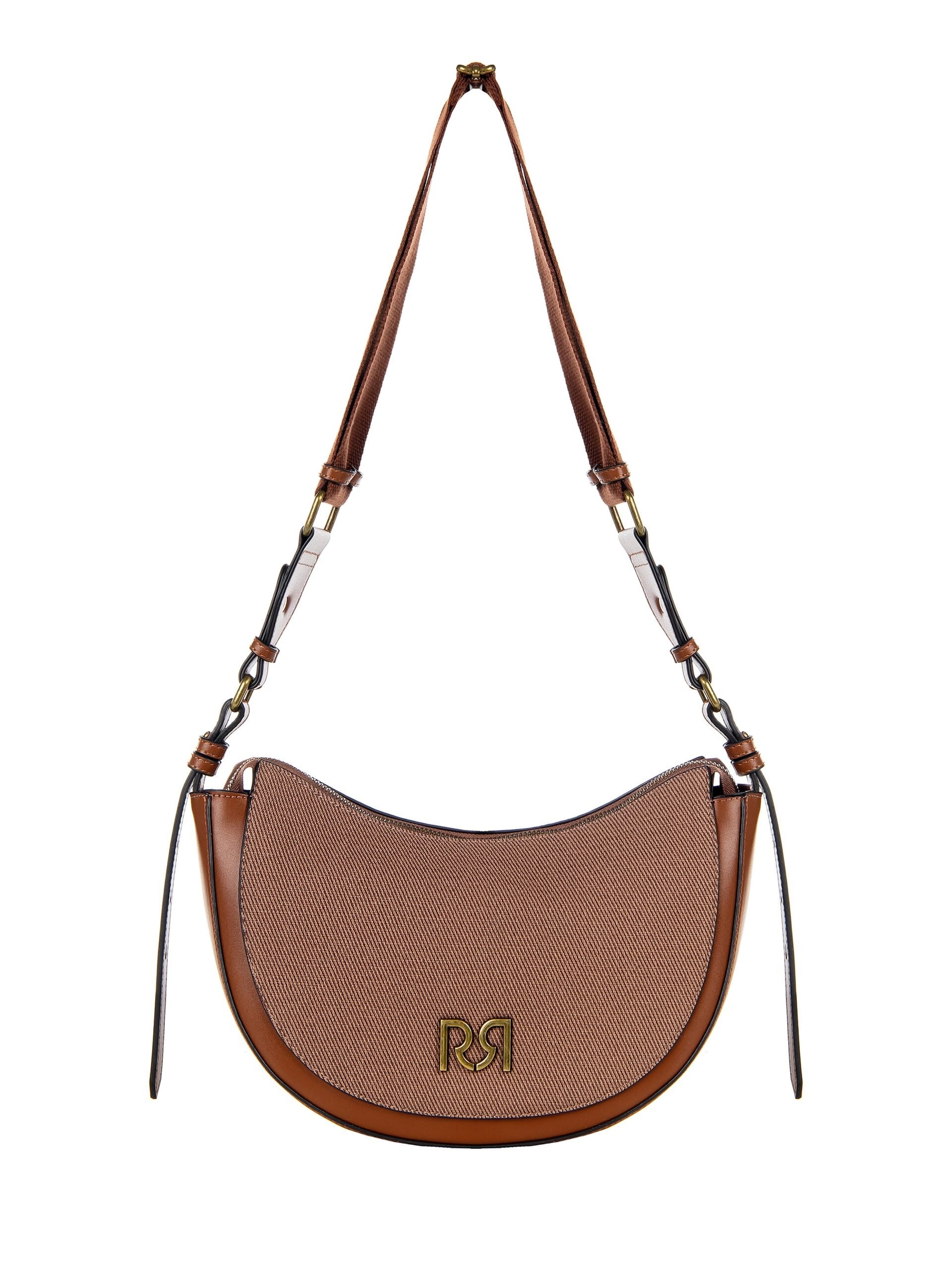 Lignes croissantes et volume compact pour ce sac à bandoulière en toile structurée avec garniture en similicuir. La bandoulière réglable assure un confort tout au long de la journée, la fermeture zippée et le logo métallique signé Rinascimento donnent du caractère aux looks de ville, de bureau et de tous les jours.