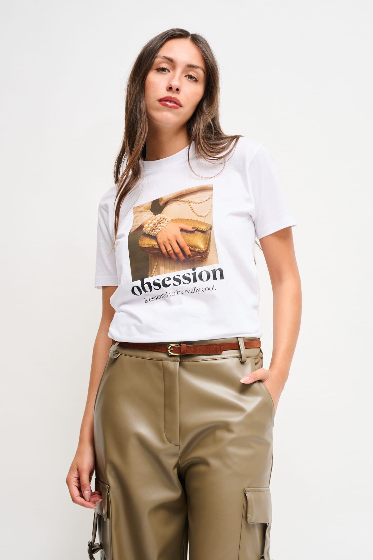 Maryley propose un tee-shirt doux et féminin en jersey de coton léger pour un confort quotidien. L'imprimé photographique frontal donne du caractère à ce tee-shirt, qui se termine par un col rond et des manches courtes essentielles. Parfait avec un jean ou un blazer pour une tenue de bureau décontractée, il est également idéal pour une tenue de tous les jours et du week-end.