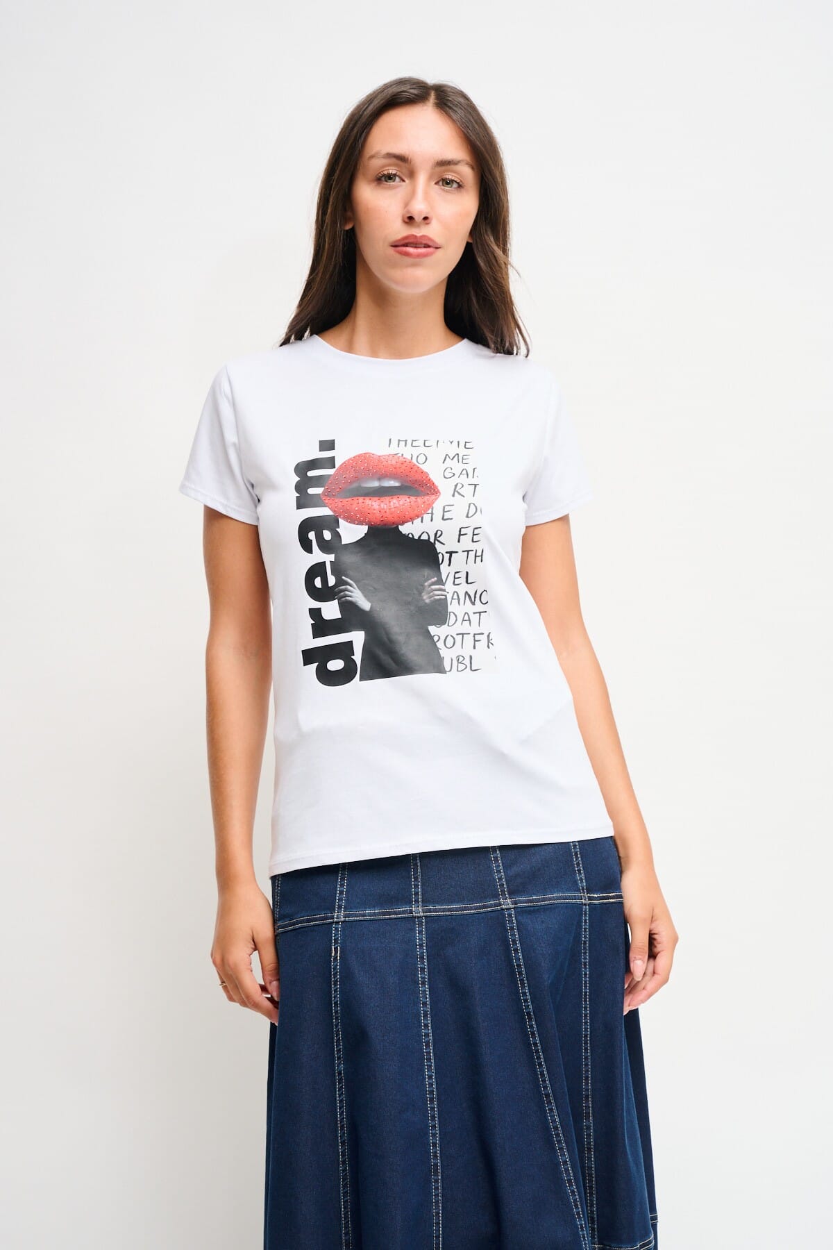 Maryley signe un tee-shirt confortable à la coupe droite en coton doux, agréable sur la peau. L'imprimé devant avec des lèvres en relief et des micro strass ajoute du caractère, tandis que l'encolure ras du cou épurée assure la polyvalence. Parfait pour le quotidien urbain et les loisirs, il se marie bien avec un jean et un blazer pour un look audacieux.