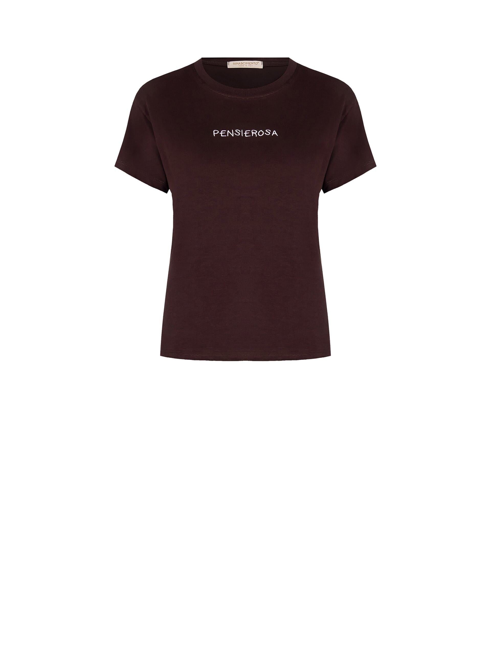 Prix réduit ! T-Shirt régulier en coton avec Slogan brodé lilas au centre Rinascimento Expand