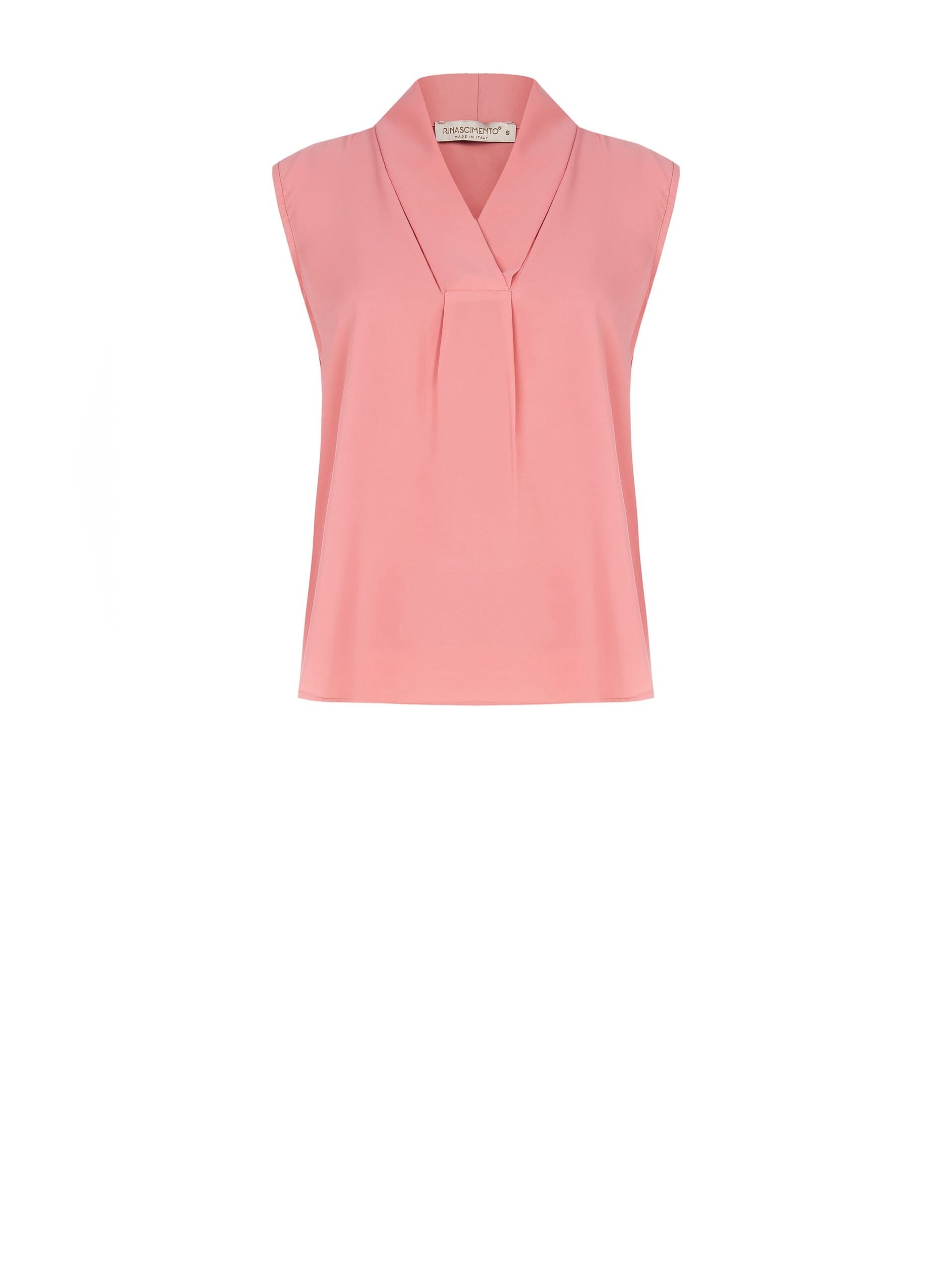 Blouse sans manches à la coupe souple et légèrement évasée, en tissu fluide effet soie pour un confort et un tombé élégant. Encolure croisée avec pli central qui affine la silhouette ; micro logo au dos. Parfait avec un tailleur pour le bureau ou avec un jean et des sandales pour le chic de tous les jours.