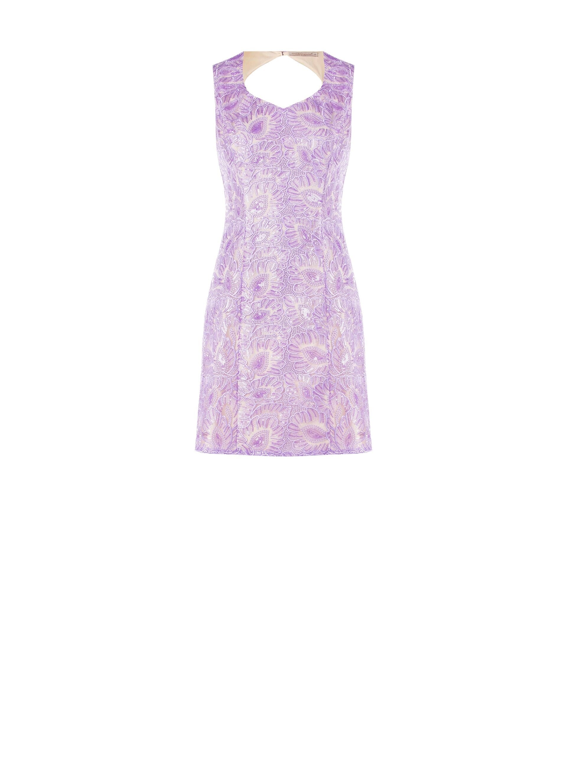 Abito Corto Svasato in Tulle Ricamato con Paillettes